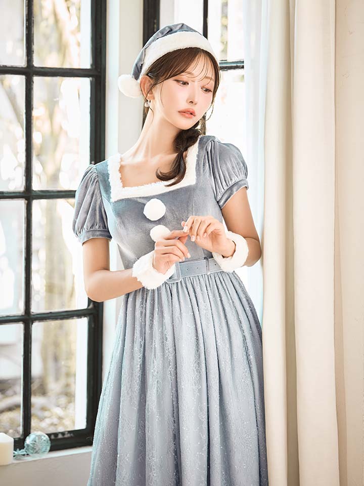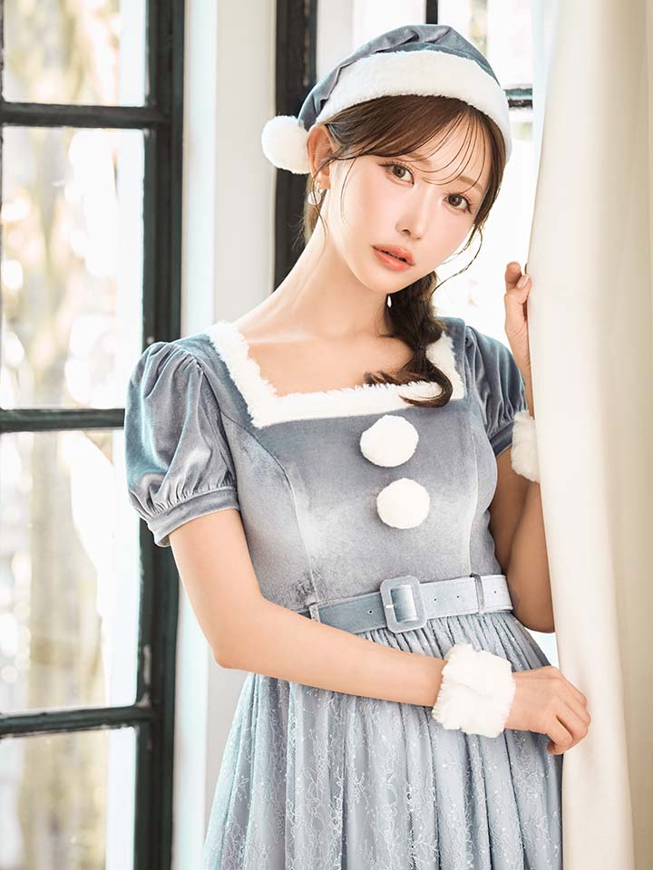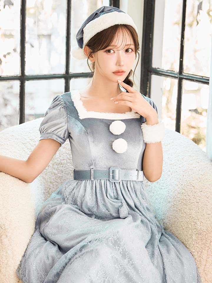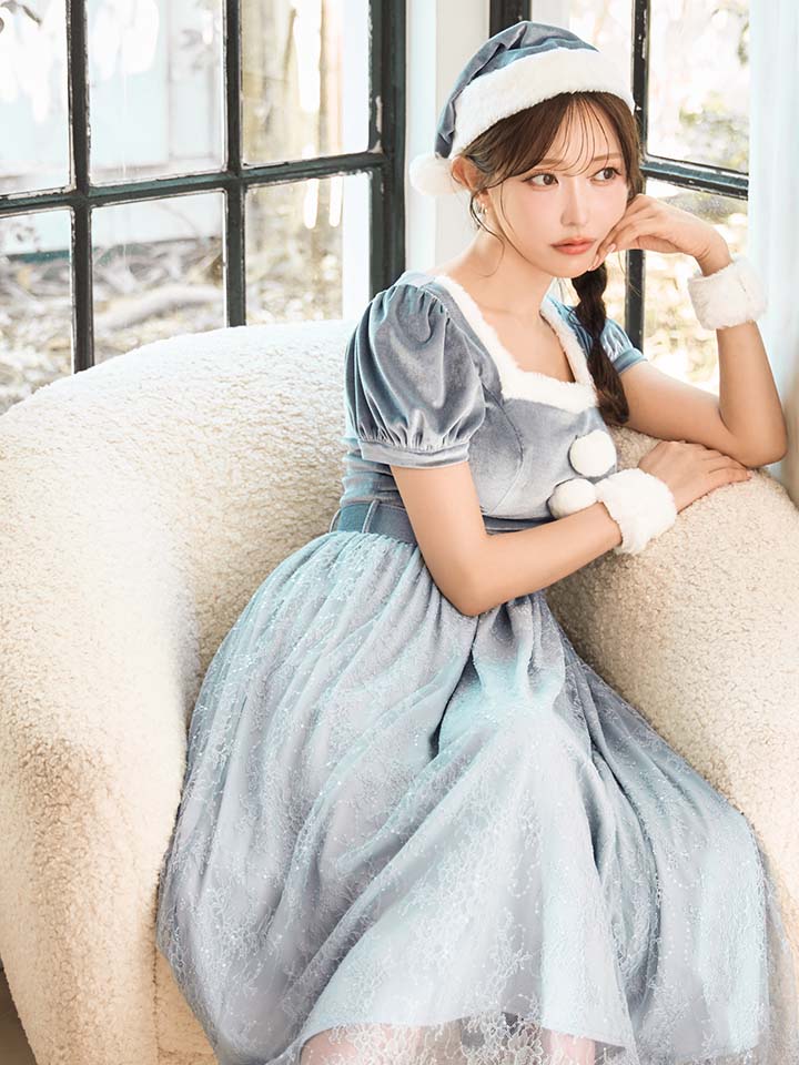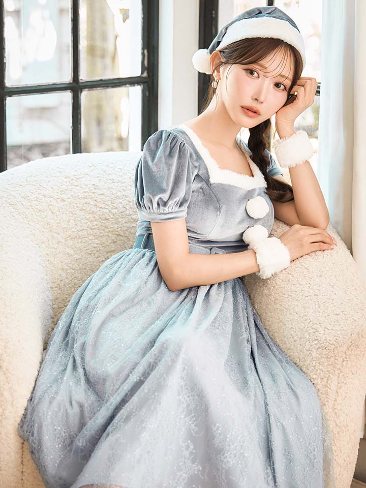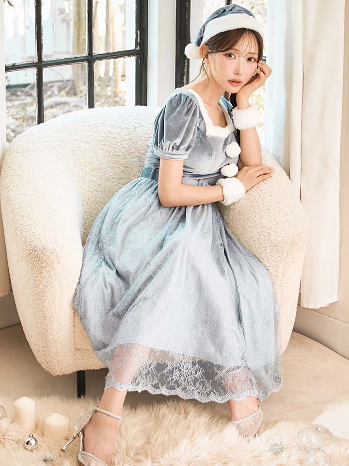 【サンタSALE!!】【サンタコス 5点セット】【S-Mサイズ/2カラー】ベロアワンピースサンタ[OF01] [SS-038-SB-dzw-BL-25YI]