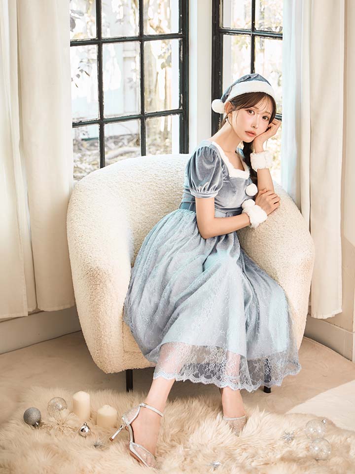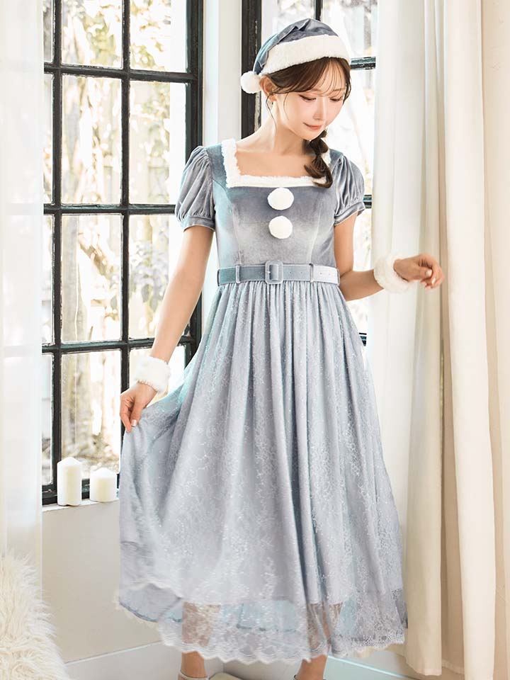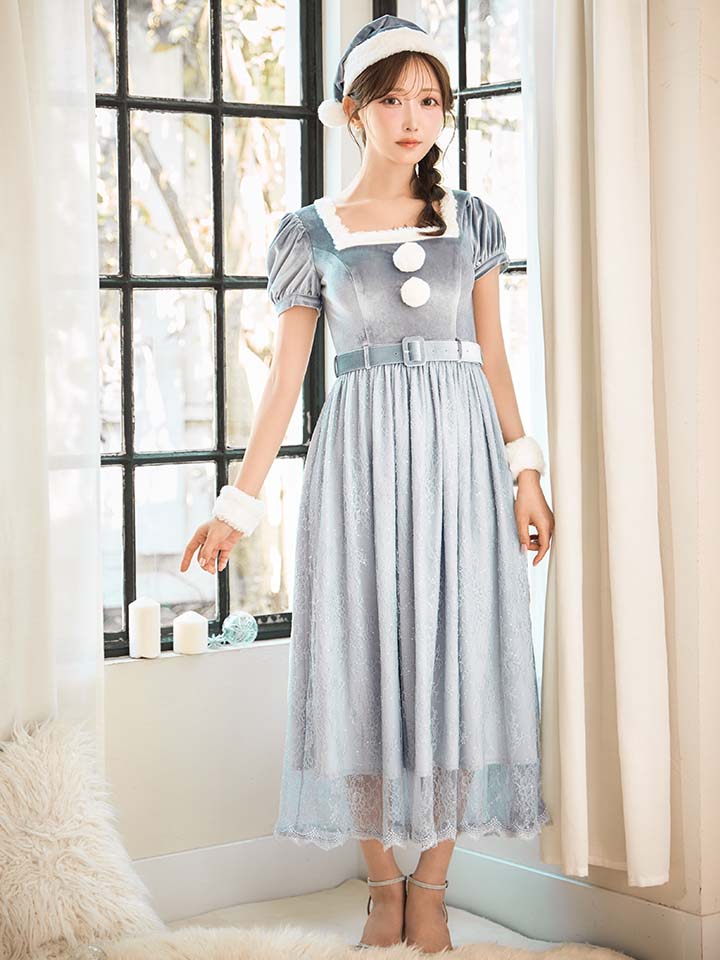 #フレア #ワンピース #Aライン #袖あり #半袖 #レース #ベロア #大人 #クリスマス #パーティ # サンタコス #サンタさん