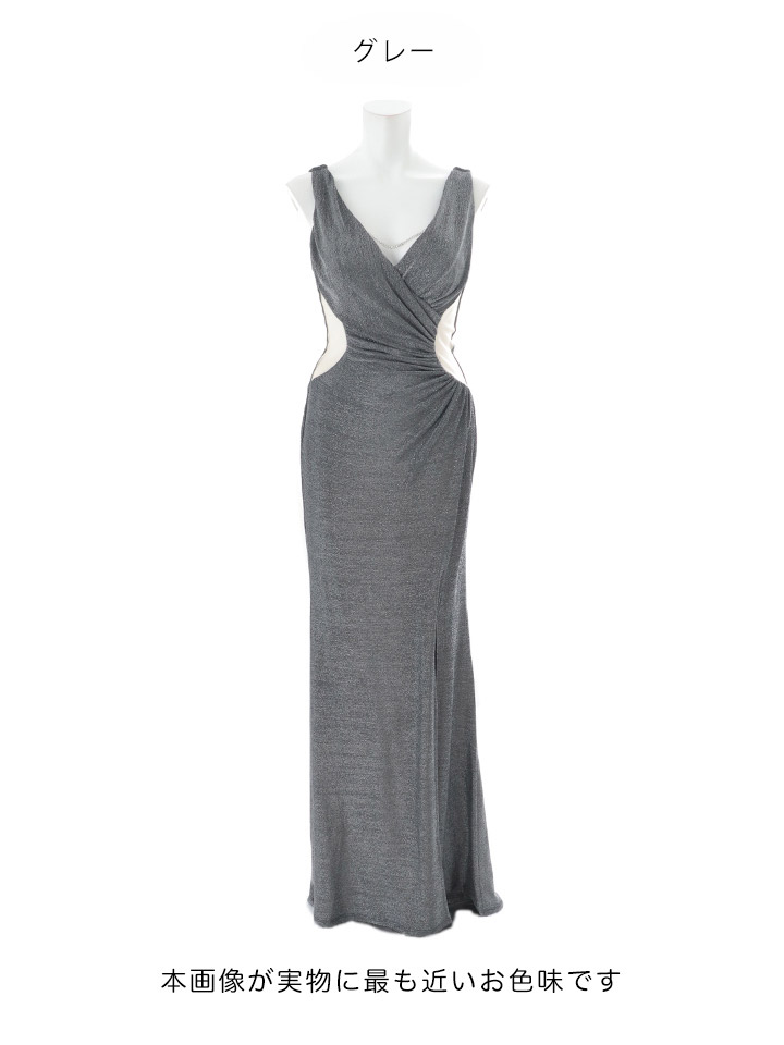 送料無料!ウエストカットノースリーブラメロングドレス/キャバドレス【S-Lサイズ/2カラー】[OF03] 【IM】