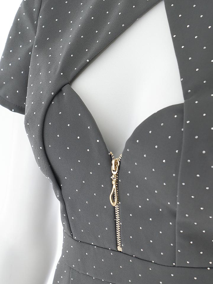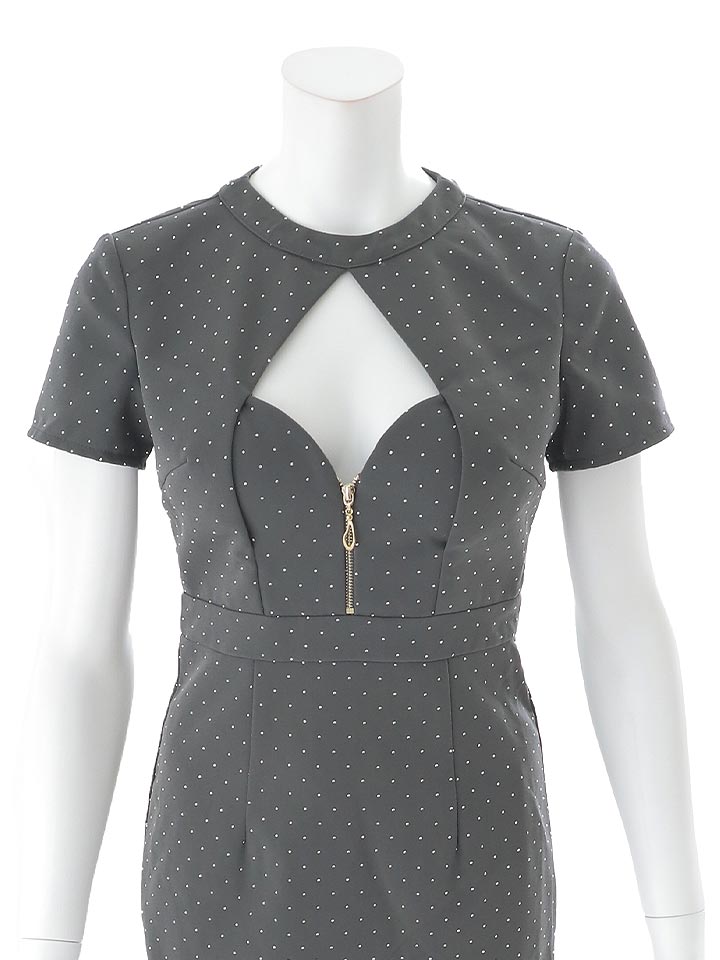 大人上品なシルエットが魅力のミニドレス。 谷間を美しく魅せるデザインで、カットとのバランスも抜群です。 胸元のファスナーで開き具合を調整でき、セクシーさと着やすさを両立した一着です。