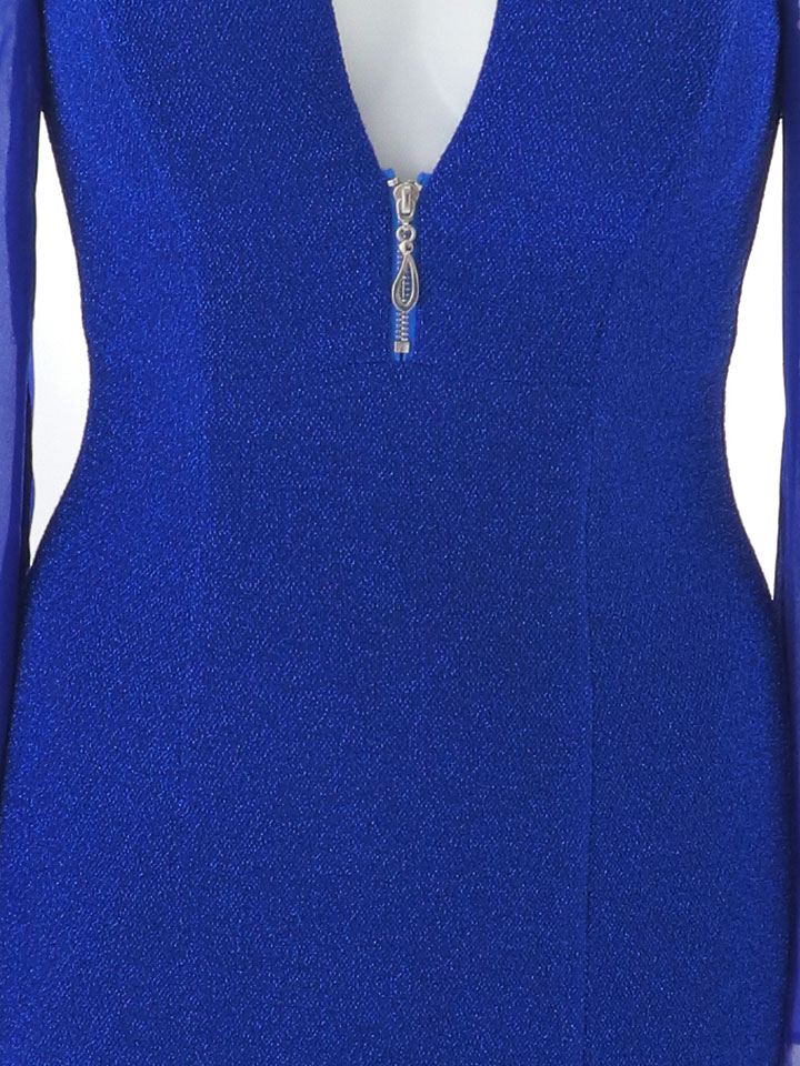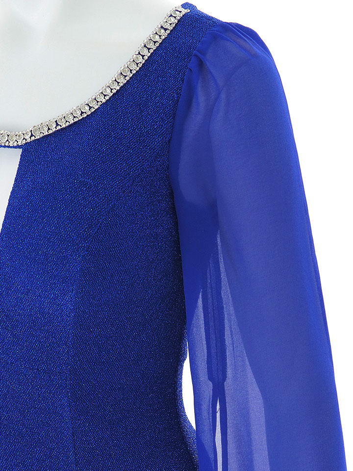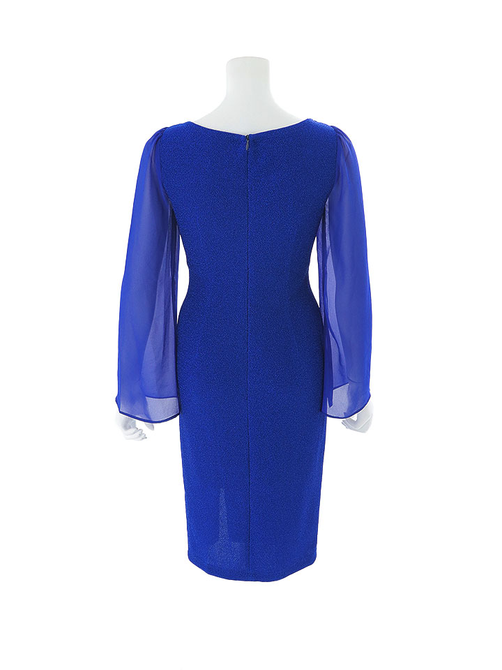 袖付きデザインが上品なミディアムワンピース。 谷間を美しく魅せるカットと、首元のラウンドビジューデザインが華やかさをプラス。