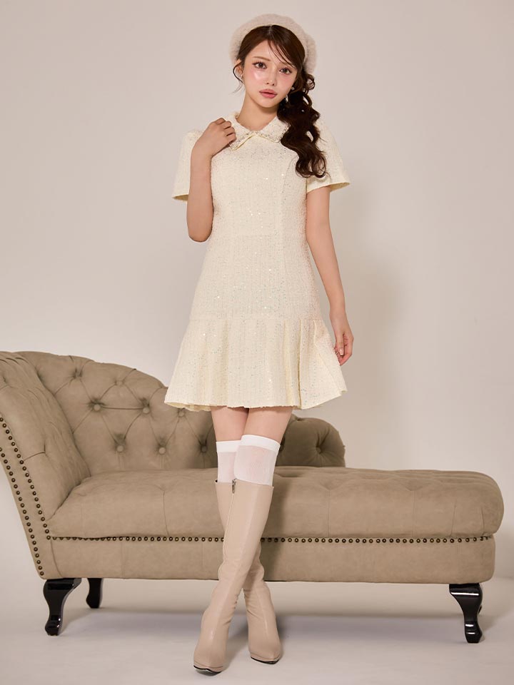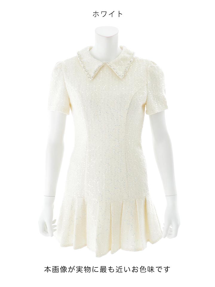 ツイードスパンコールプリーツスカートミニドレス/キャバドレス【XS-XLサイズ/1カラー】[OF01] 【SB】IA [3337SBIA-251125-1]