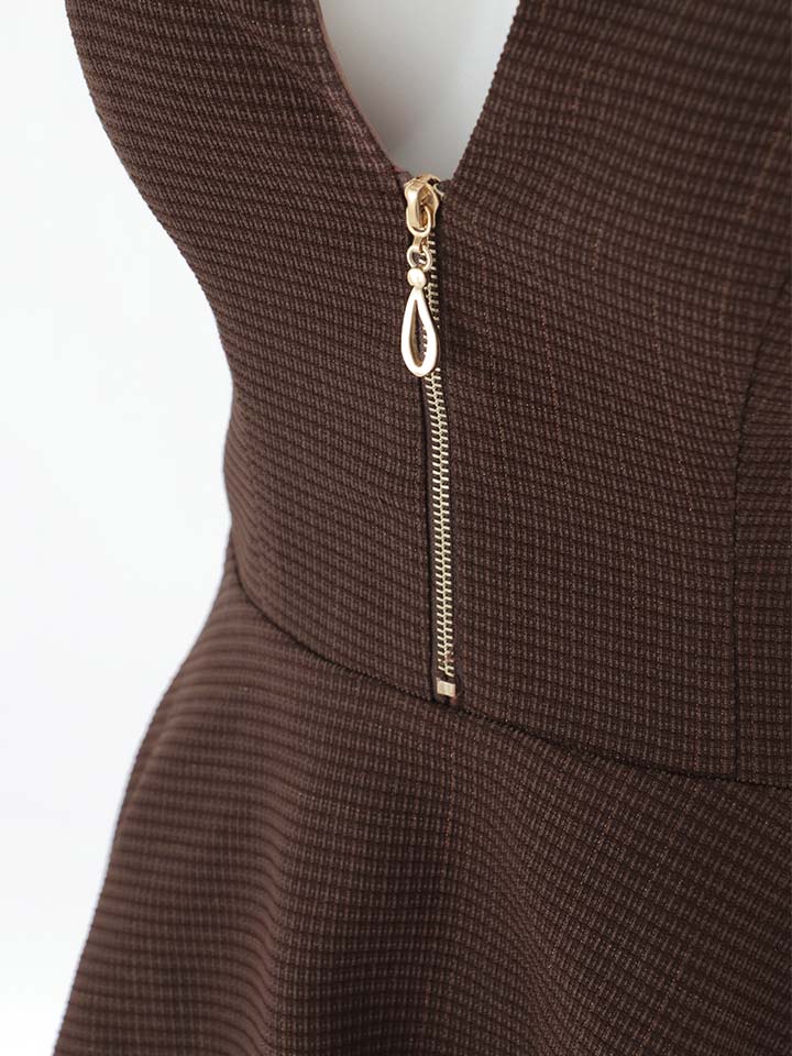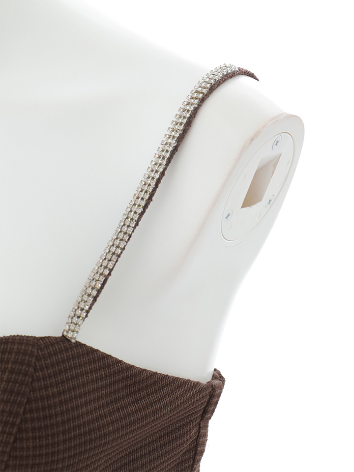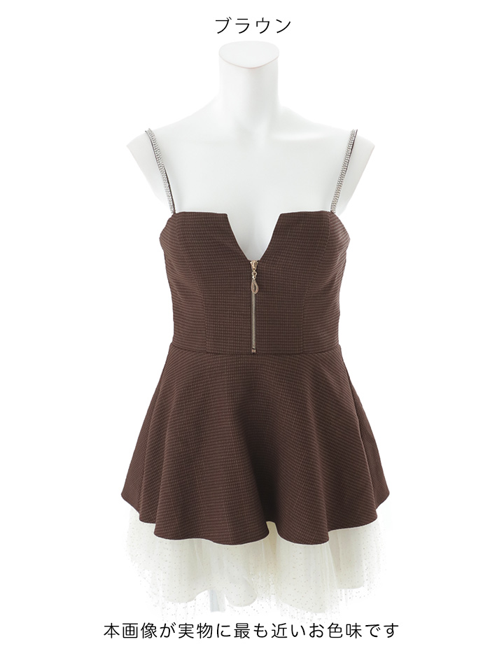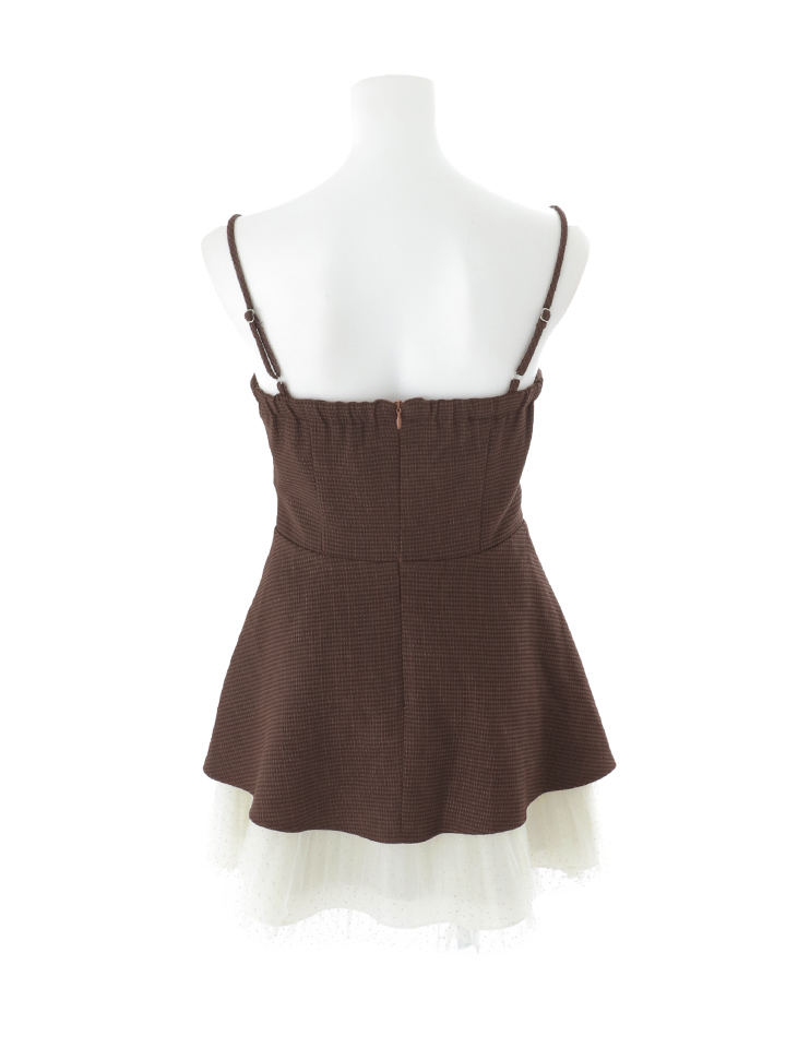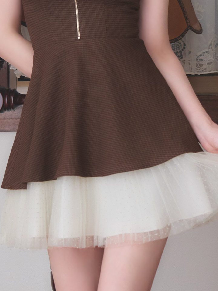 #ブラウン #ミニドレス/ミニ丈 #チュール #ツイード #チェック柄 #キャミ #ノースリーブ #谷間見せ(魅せ) #背中見せ(魅せ) #Aライン・フレアスカート #スイート・可愛い(かわいい)系 #JEWELSトレンド