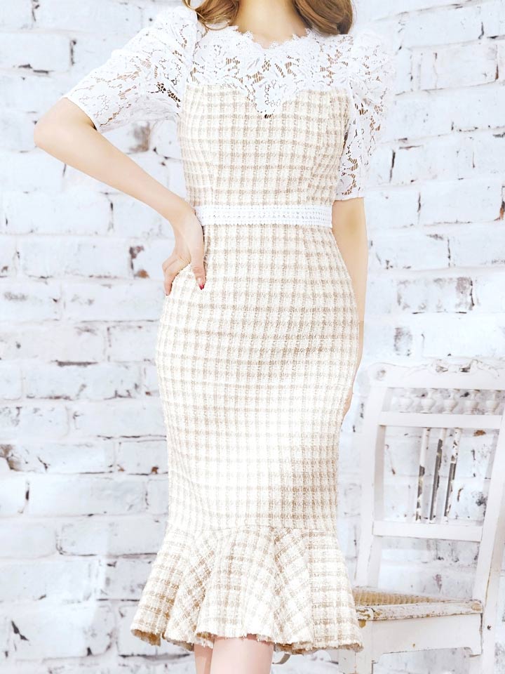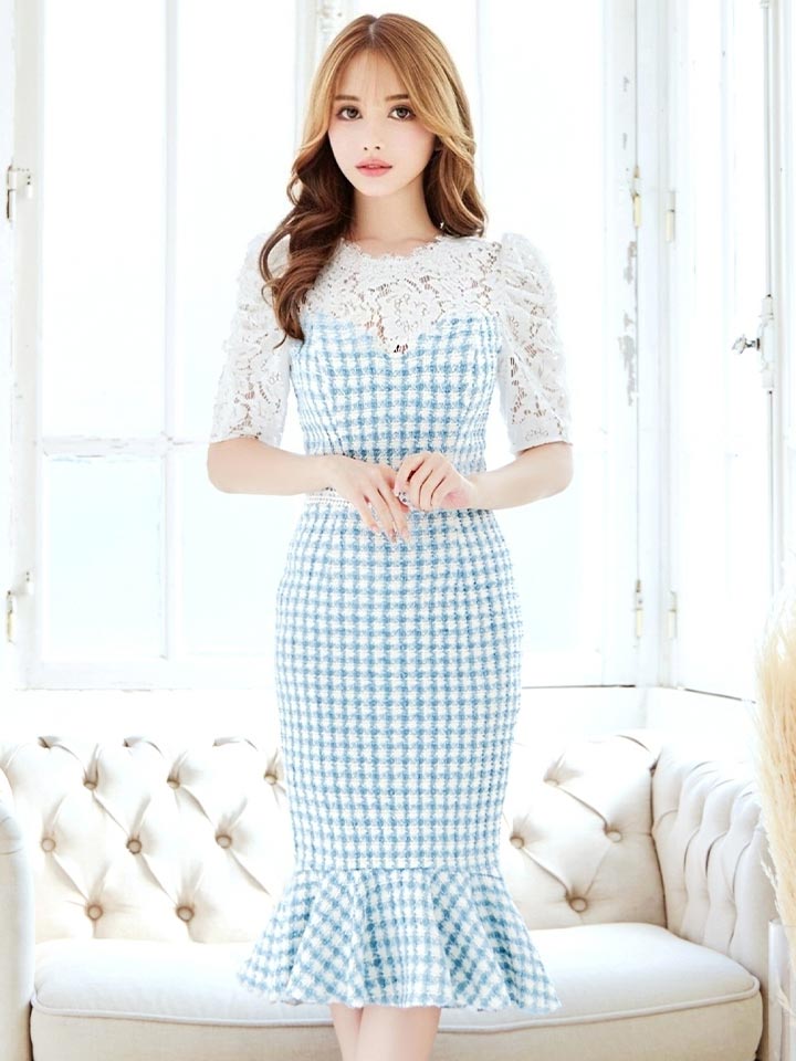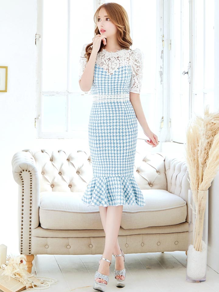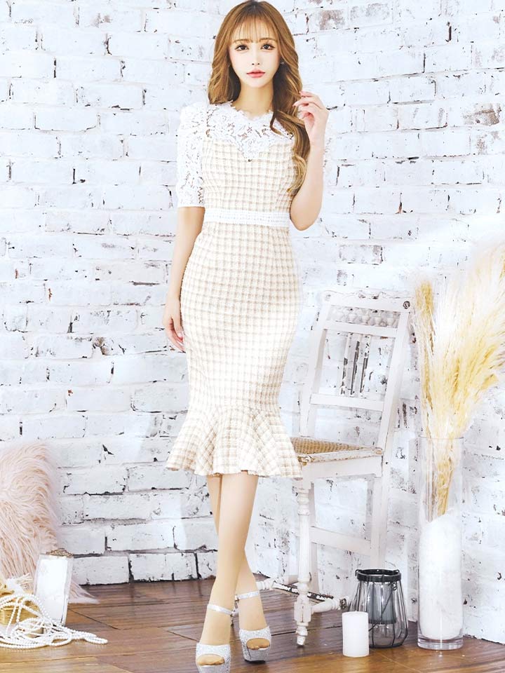 ガーリーなチェックツイードが目を惹くミディアムドレス。