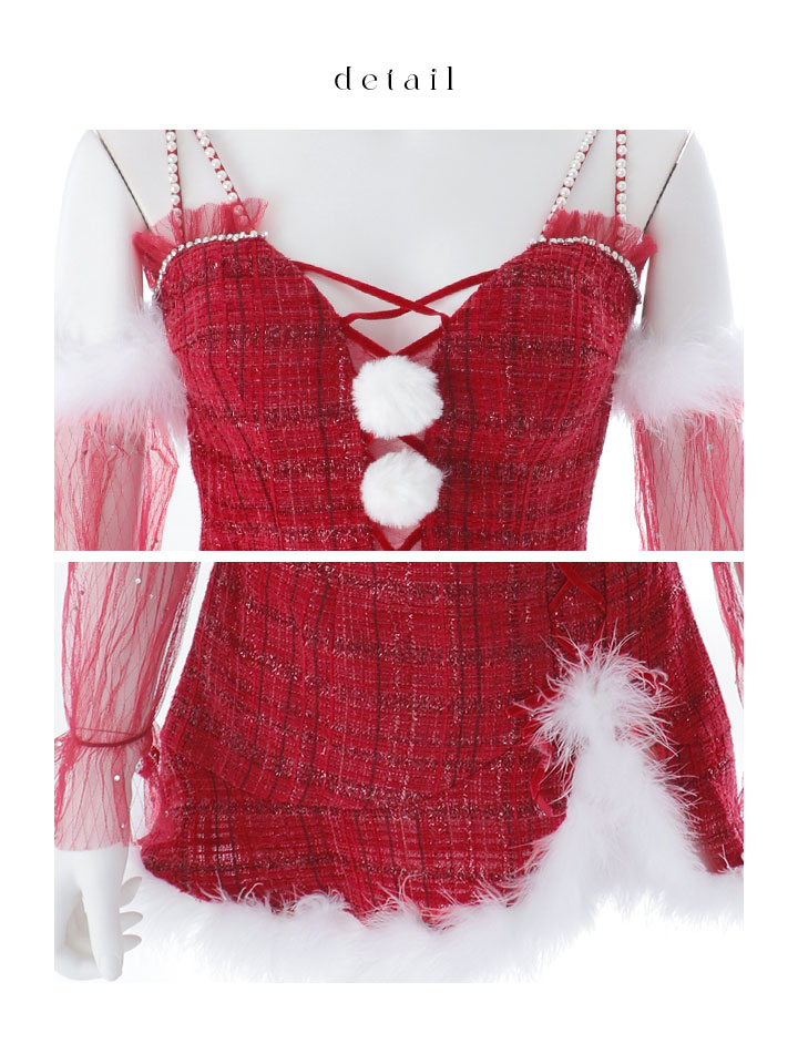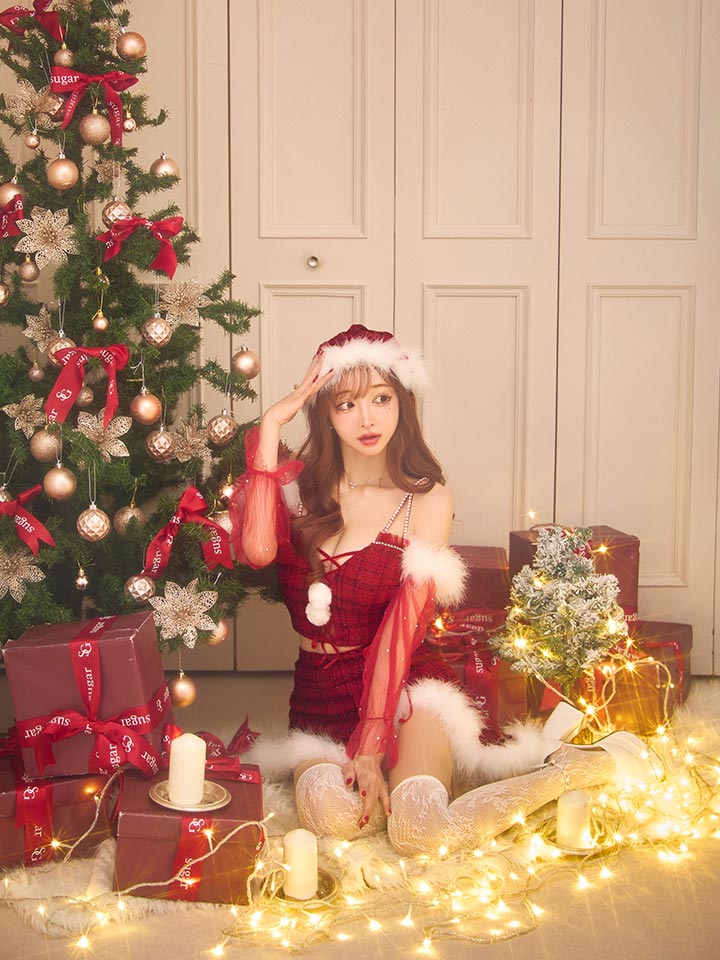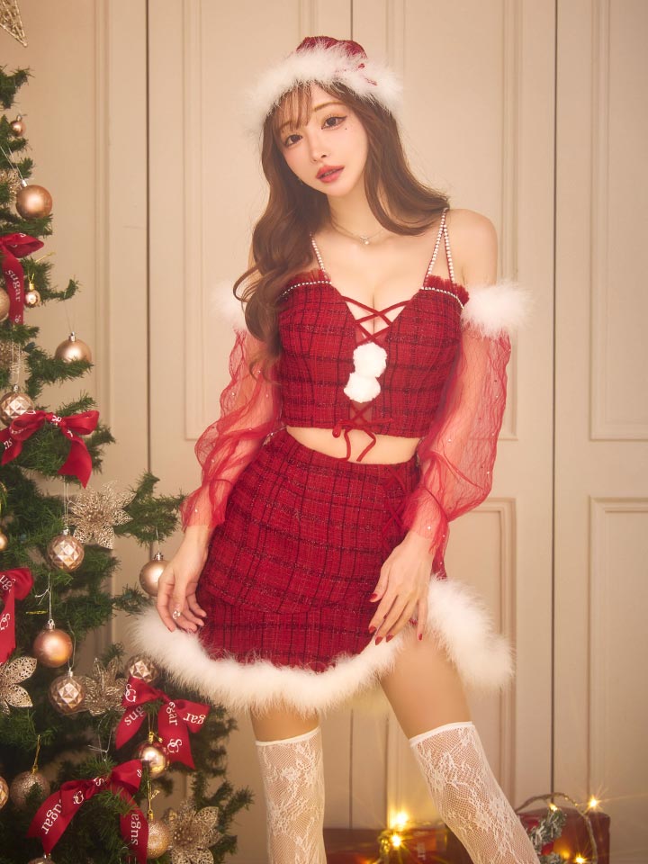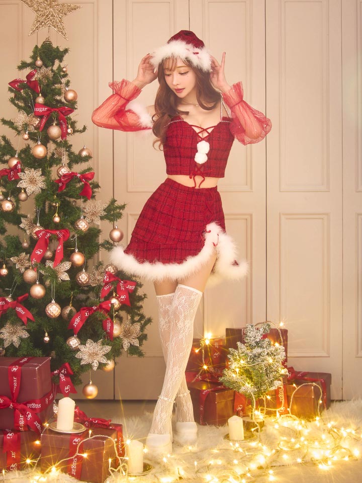 【即日発送】【サンタ】真優川咲ちゃんコラボバストクロスチェックツイードサンタコスプレ【コスプレ5点セット】【XS-Mサイズ/1カラー】[OF04] [SS-185-YN-MS-R-25MS-1]
