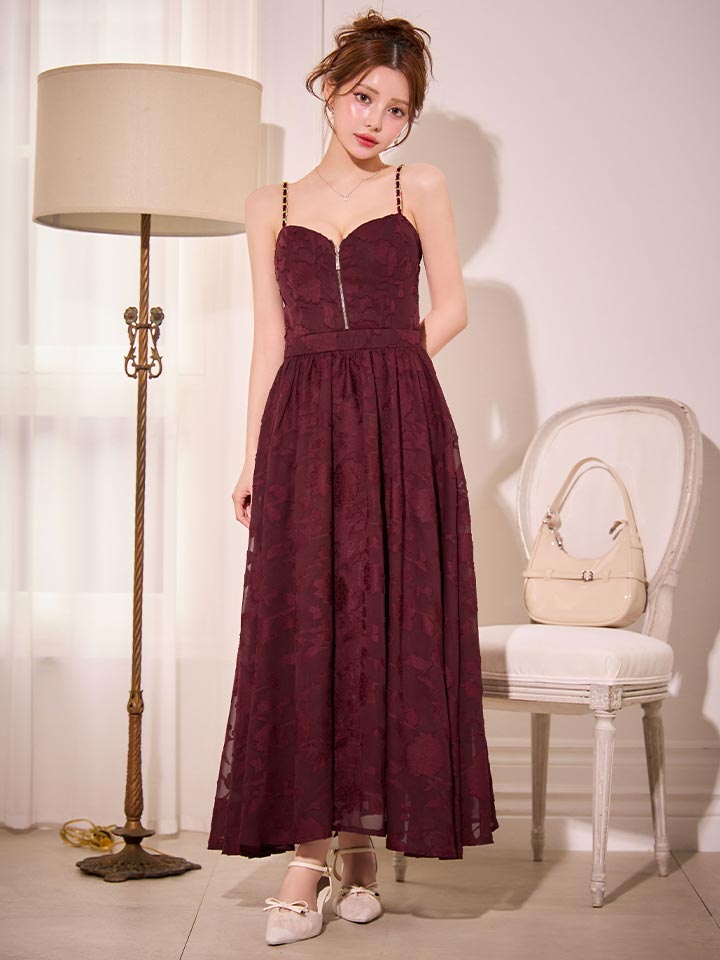花柄のふわっとシフォンが華やかな雰囲気を放つお嬢様系ワンピース