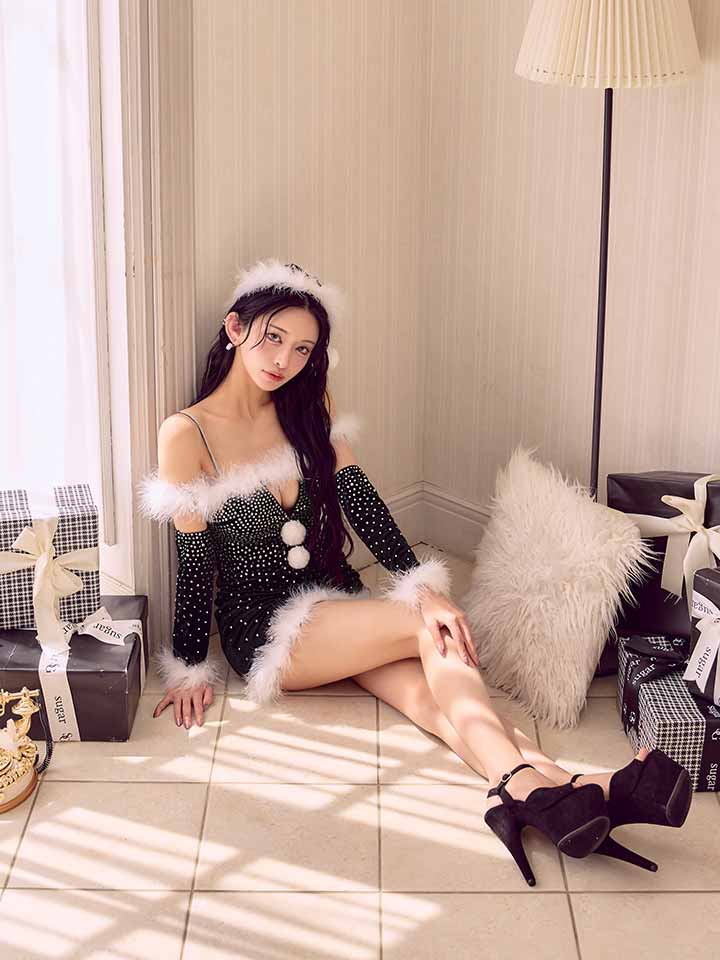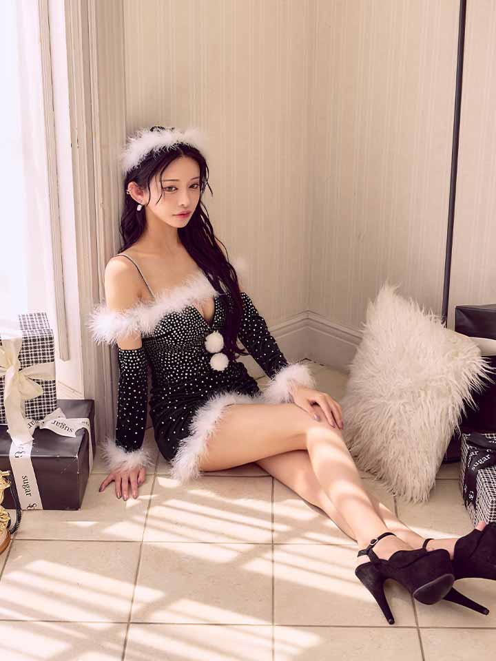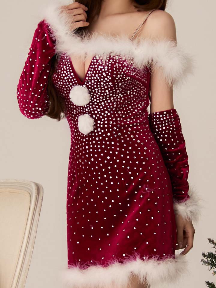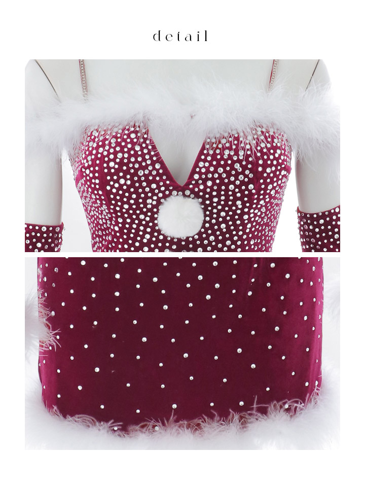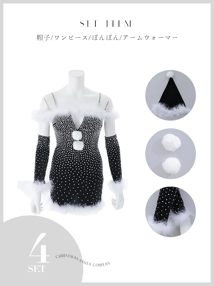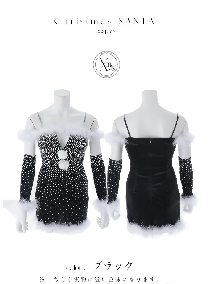 - > 【即日発送】【サンタ】グラデーションビジューアームウォーマー付きサンタコスプレ【コスプレ4点セット】【XS-Mサイズ/2カラー】[OF03]