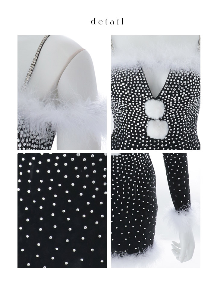 黒 ブラック ミニ ノースリーブ タイトスカート ファー