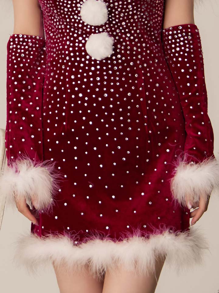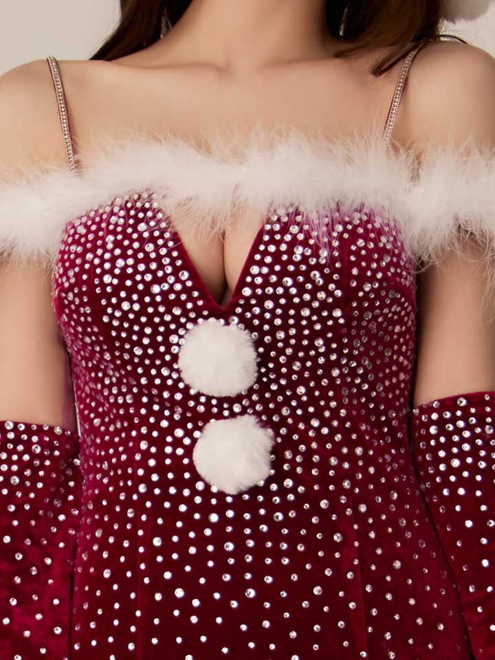 【即日発送】【サンタ】グラデーションビジューアームウォーマー付きサンタコスプレ【コスプレ4点セット】【XS-Mサイズ/2カラー】[OF03] [SS-180-YN-dzw-B-25MM]