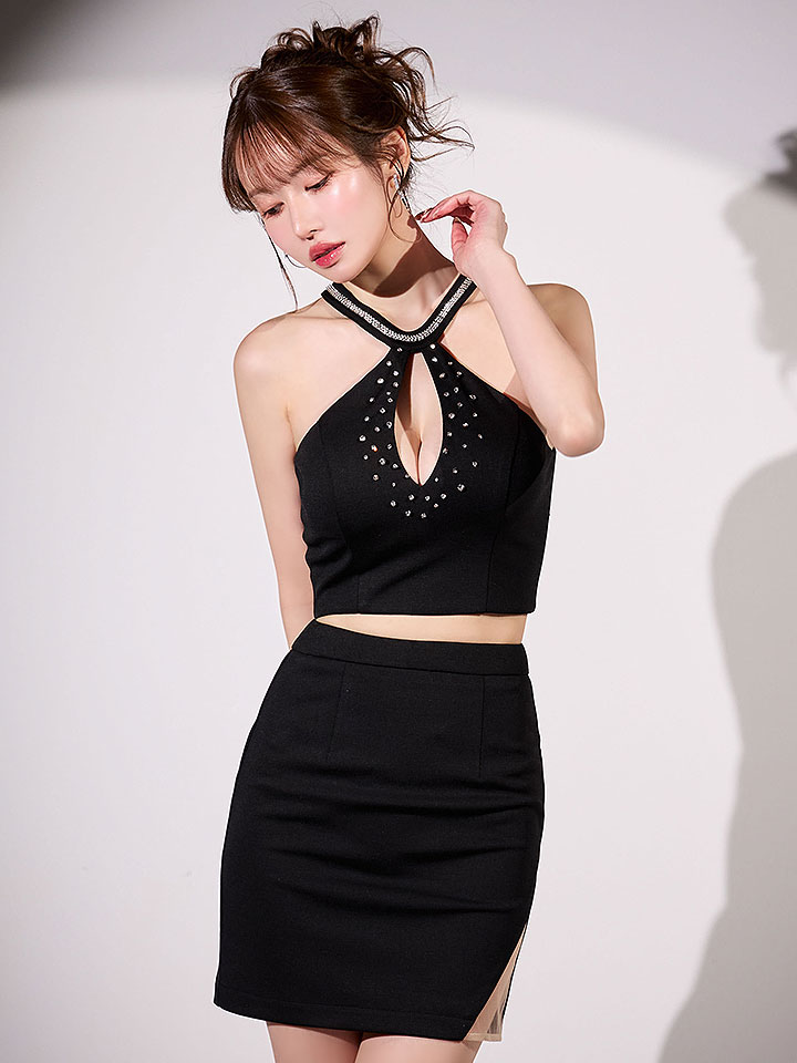 送料無料!ビジューアメスリカットアウトセットアップドレス/キャバドレス【XS-Mサイズ/1カラー】【予約商品/12月中旬発送予定】[OF01] 【SB】CA