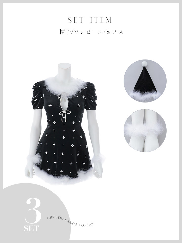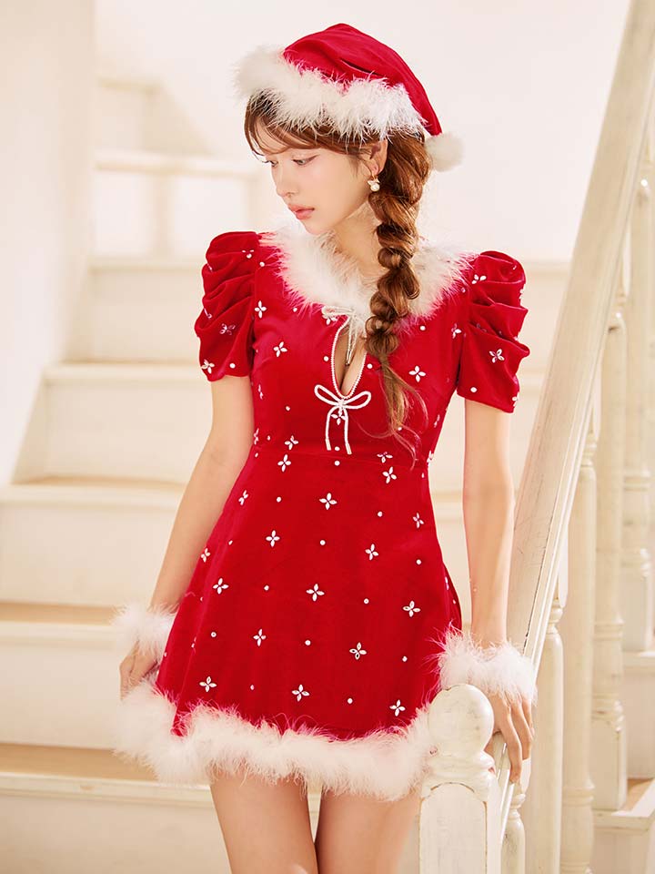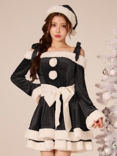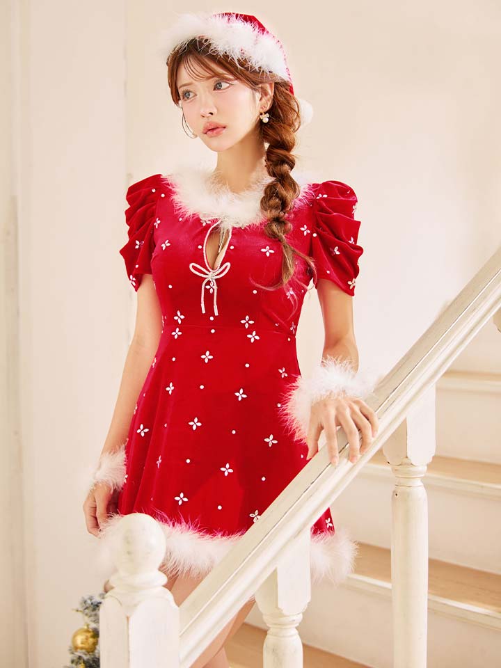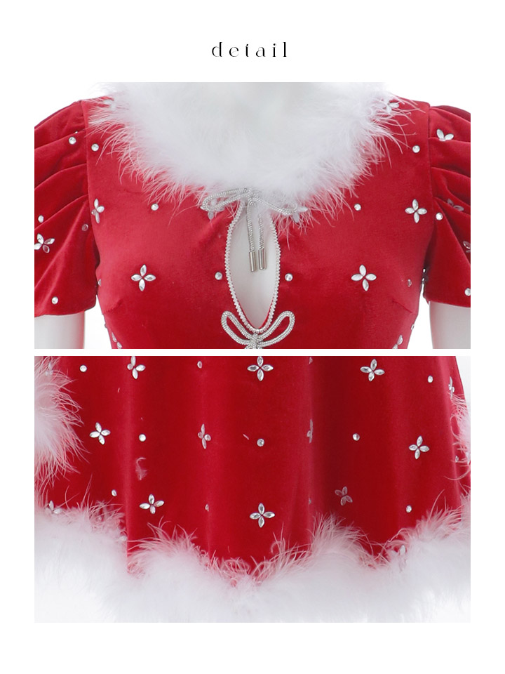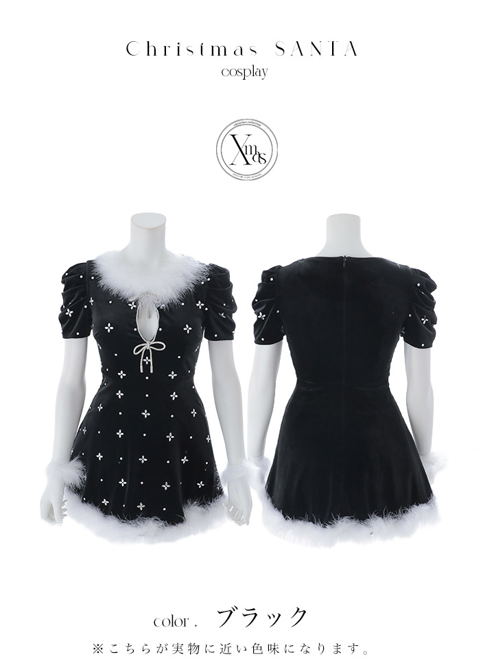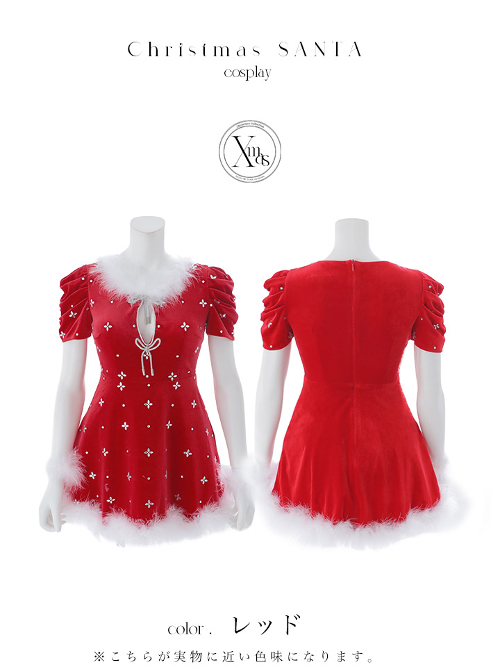 - > 【即日発送】【サンタ】リボンベロア半袖ワンピースサンタコスプレ【コスプレ3点セット】【S-Lサイズ/2カラー】[OF04]