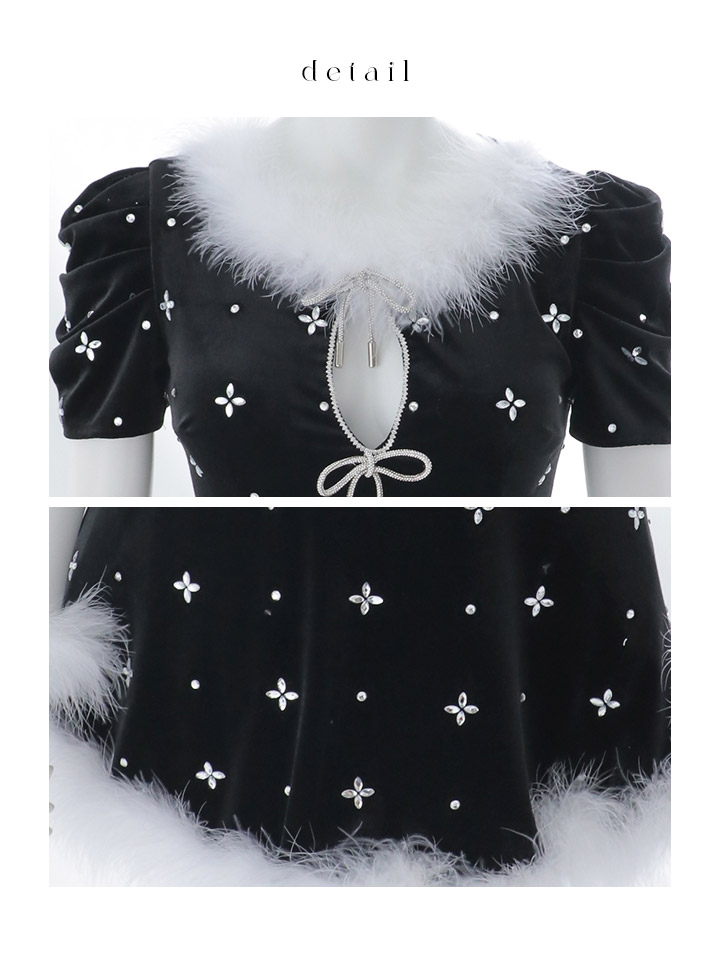 煌びやかなビジューが散りばめられて動くたびにキラキラと輝きます。