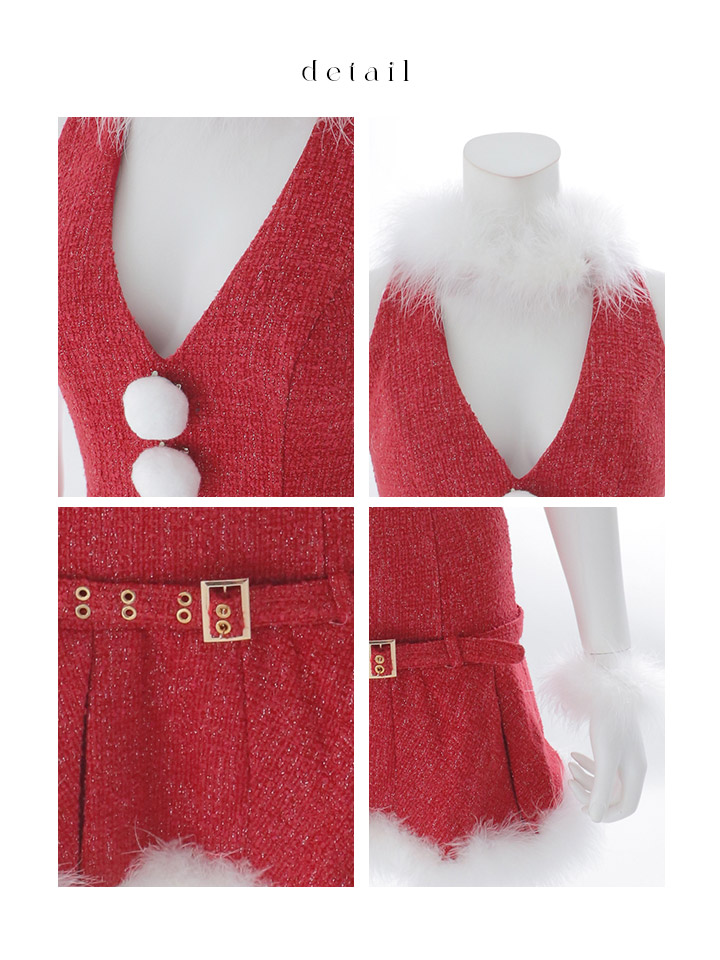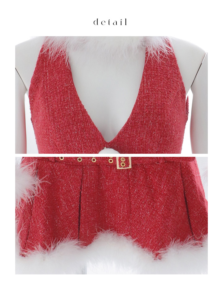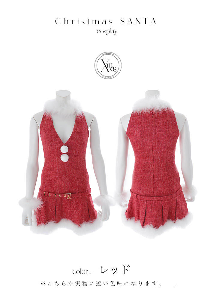 【即日発送】【サンタ】ホルターネックローライズベルトプリーツサンタコスプレ【コスプレ4点セット】【XS-Mサイズ/1カラー】[OF03] [J-965-SS-IM-dzw-R-25YM]