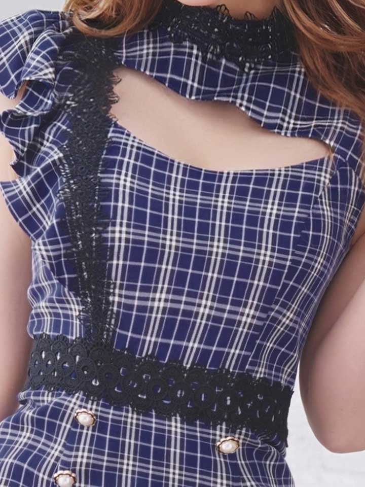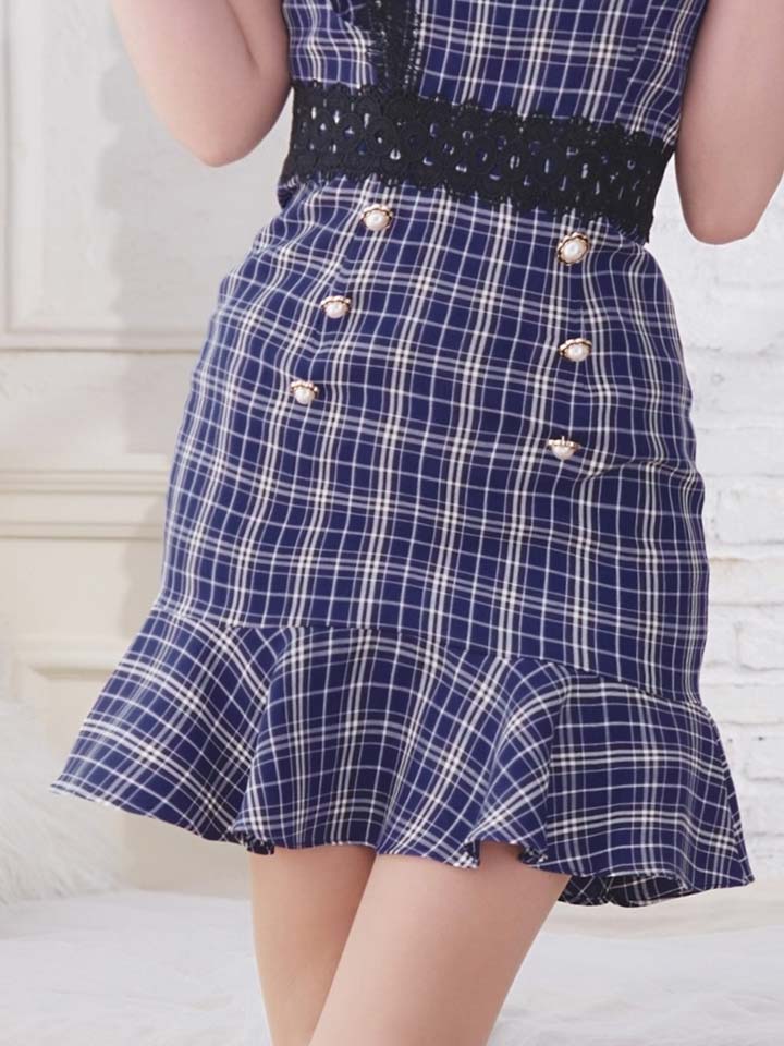レースチェックマーメイドタイトミニドレス/キャバドレス【XS-Mサイズ/4カラー】[OF05]