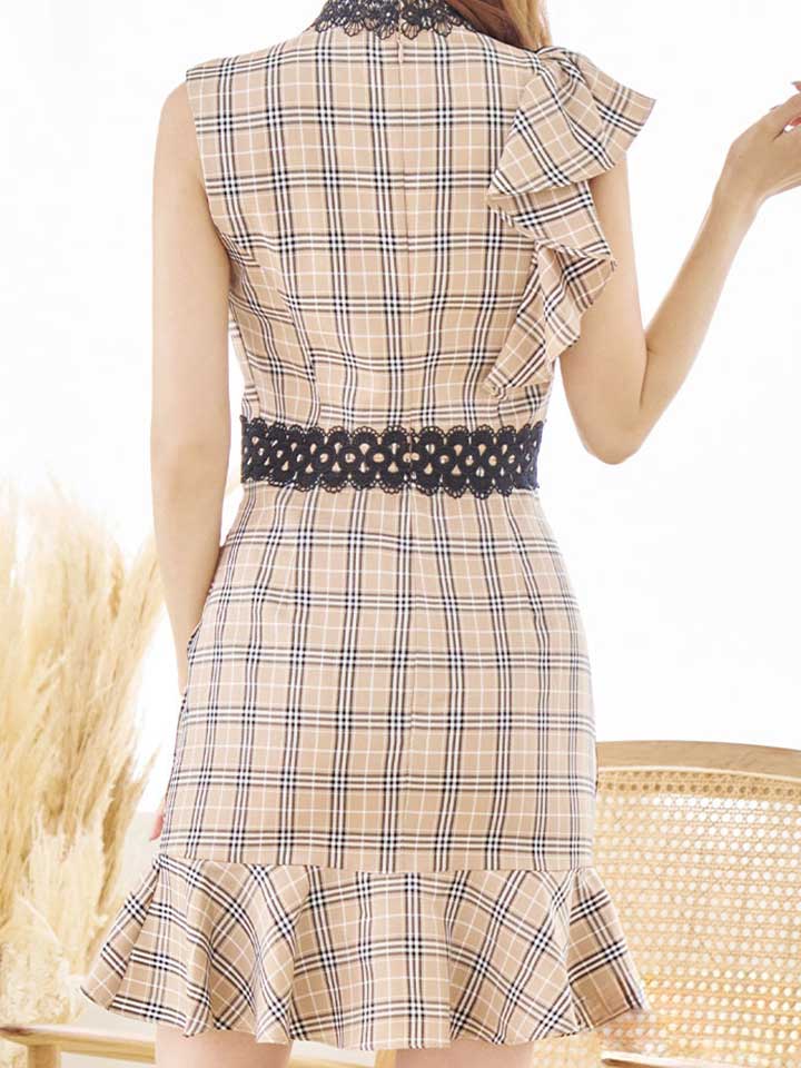 チェック柄×フリルデザインがCUTEなマーメイドミニドレス。