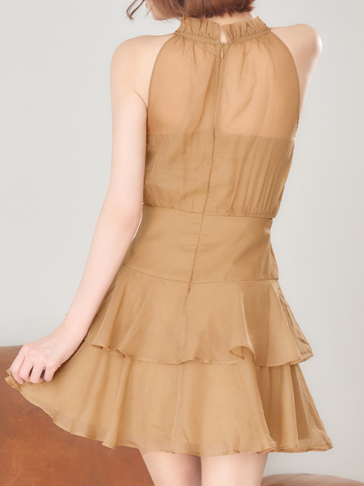 ティアードのフレアスカートがふんわりと広がり、可愛らしさの中に大人っぽさをプラス。