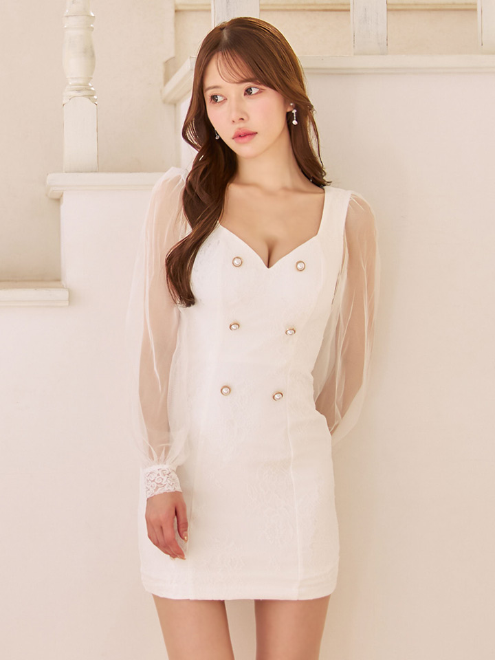 刺繍レースシアースリーブタイトミニドレス/キャバドレス【XS-Lサイズ/2カラー】[HC02] 【SB】dzco [3077SBdzco-251118-1]