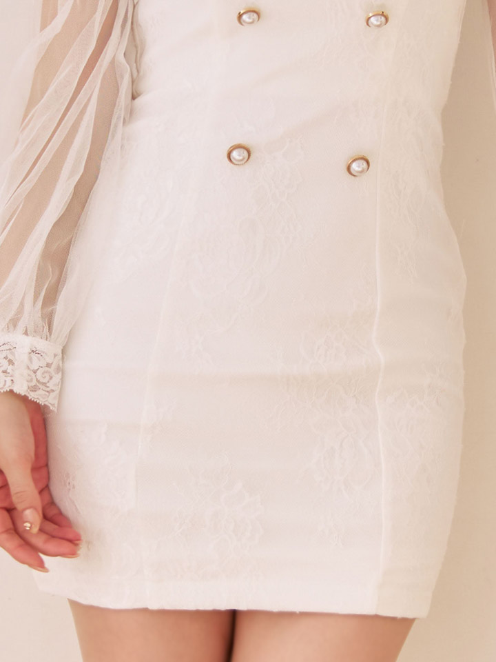 #ブルー #ホワイト #桜井みやこ着用 #ネクスト銀座 ゆめ #ミニドレス/ミニ丈 #ワンピースドレス #刺繍レース #袖あり(ロングスリーブ・長袖) #谷間見せ(魅せ) #背中隠し(ブラOK) #タイトTOPICSお知らせ