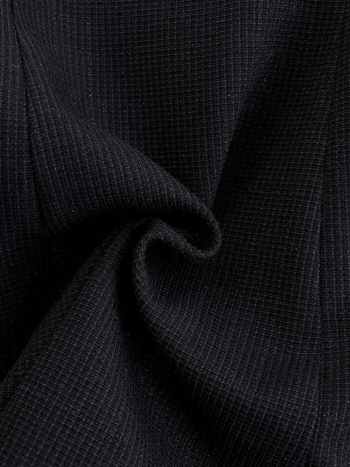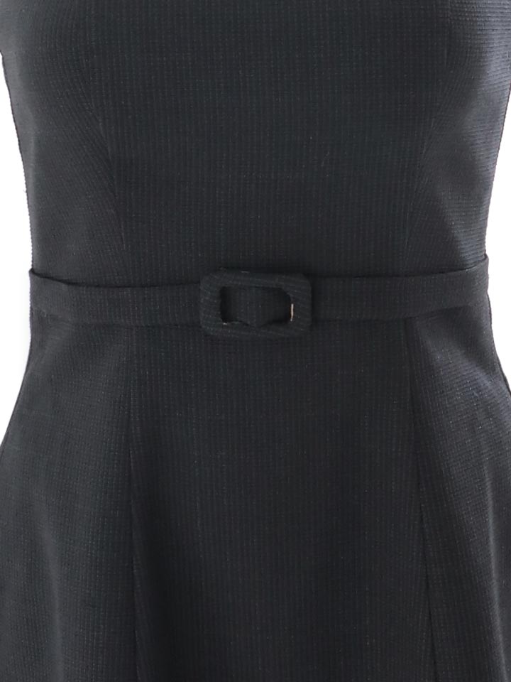 胸元は閉じたデザインで上品さをキープしつつ、Aラインスカートが女性らしいシルエットを演出。