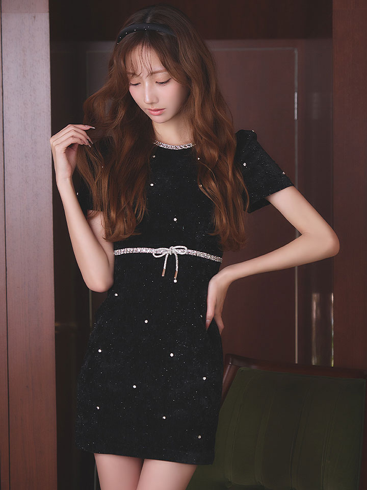 #ブラック #あすか着用 #ミニドレス/ミニ丈 #半袖,ショートスリーブ #胸元隠し(胸隠し) #背中隠し(ブラOK) #タイト #スイート・可愛い(かわいい)系 #JEWELSトレンド(WEEKLY)人気ランキング-1/17更新 (ミニドレス)