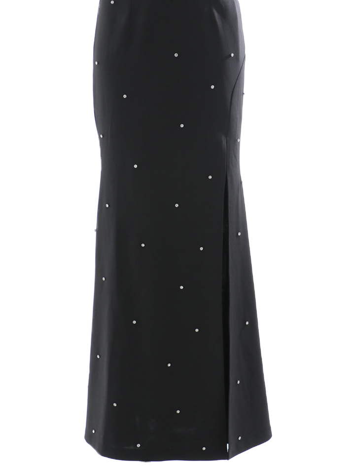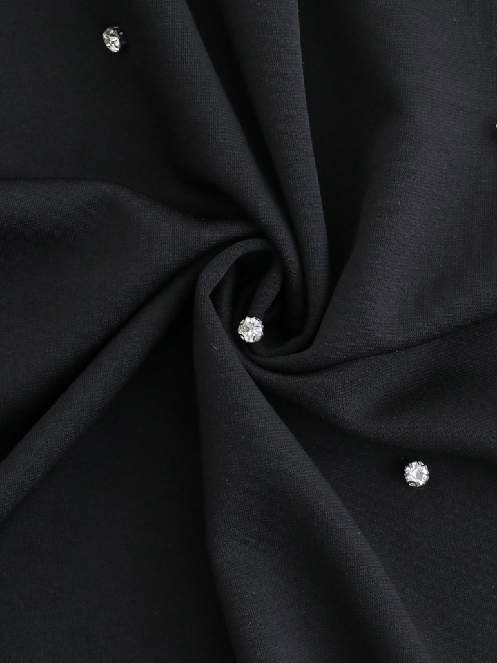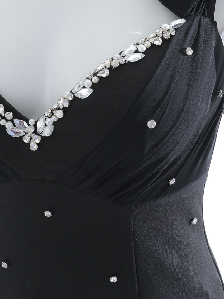 全身に散りばめられたビジューが光を受けてきらめき、どの角度からも華やかな存在感を放つ一着。
