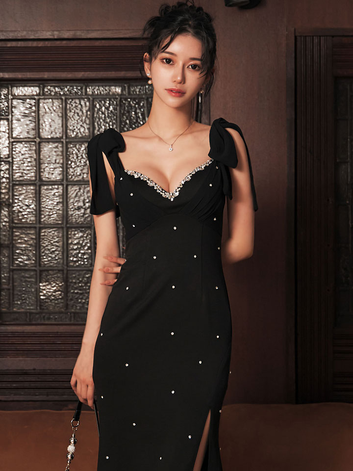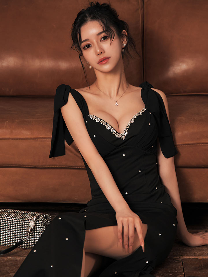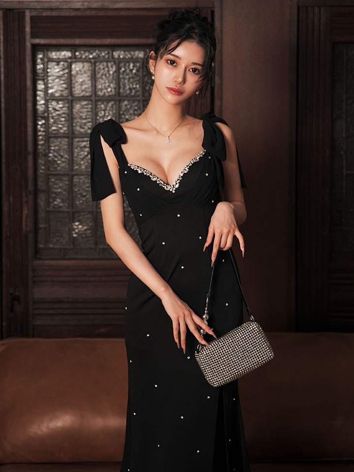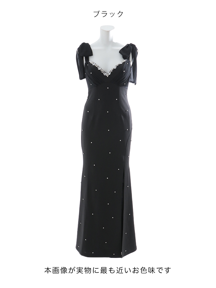 送料無料!【即日発送】シフォンリボンビジュータイトロングドレス/キャバドレス【S-Lサイズ/2カラー】[OF03]【YN】dzw [5886YNdzw-251205-1]