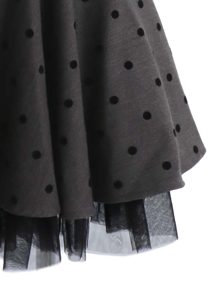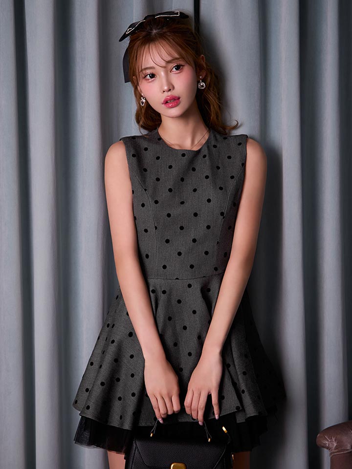 #グレー #るりぴ #ミニドレス/ミニ丈 #レース #チュール #ドット柄 #ノースリーブ #胸元隠し(胸隠し) #背中隠し(ブラOK) #Aライン・フレアスカート #スイート・可愛い(かわいい)系 #JEWELSトレンド