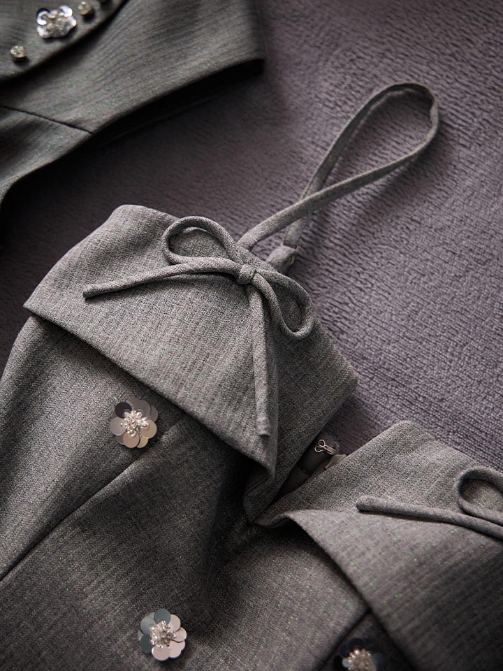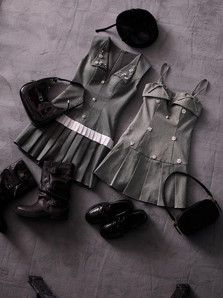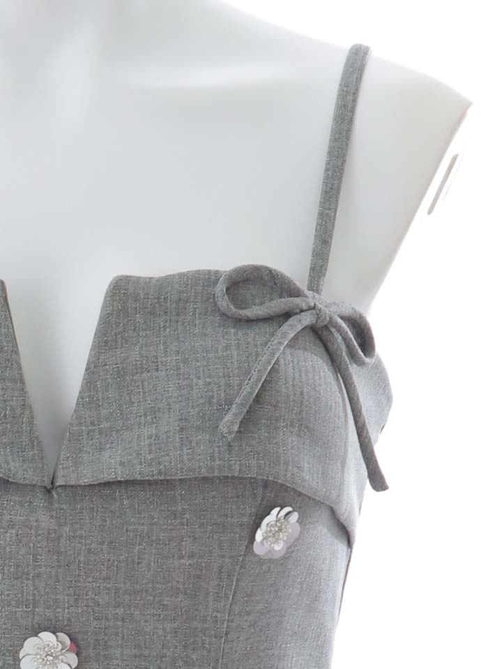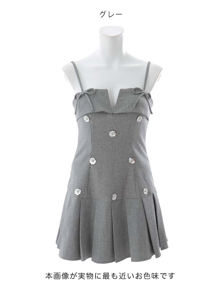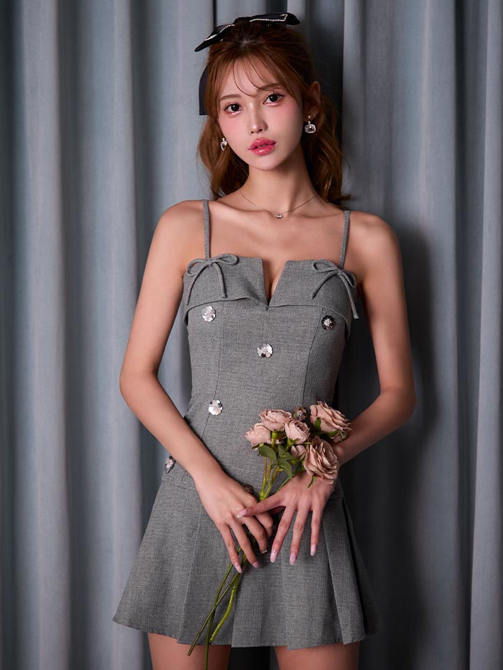 #グレー #るりぴ #ミニドレス/ミニ丈 #無地 スーツ生地 ビジュー #キャミ #ノースリーブ #谷間見せ(魅せ) #背中見せ(魅せ) #Aライン・フレアスカート #プリーツスカート #スイート・可愛い(かわいい)系 #JEWELSトレンド