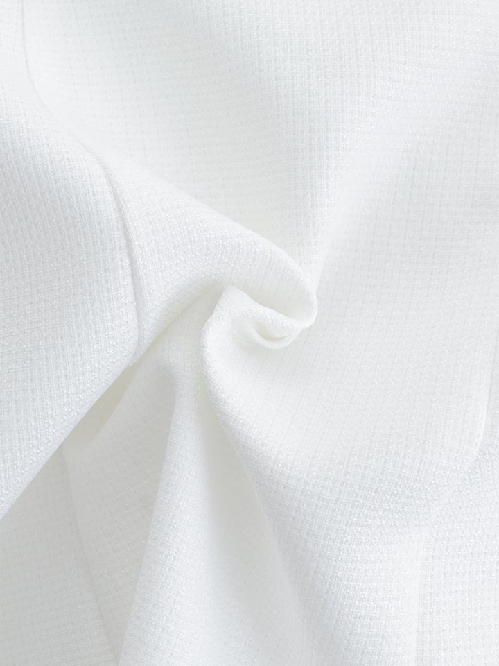 ほどよい谷間見せデザインが大人の色気を漂わせつつ、清潔感のあるバランスに仕上げています。