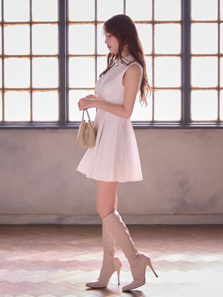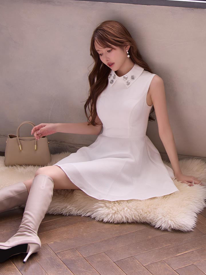 #ホワイト #ネクスト銀座 ゆめ #ミニドレス/ミニ丈 #ツイード ビジュー #襟付き #ノースリーブ #胸元隠し(胸隠し) #背中隠し(ブラOK) #Aライン・フレアスカート-12/13更新 - 人気ランキング (ミニドレス)