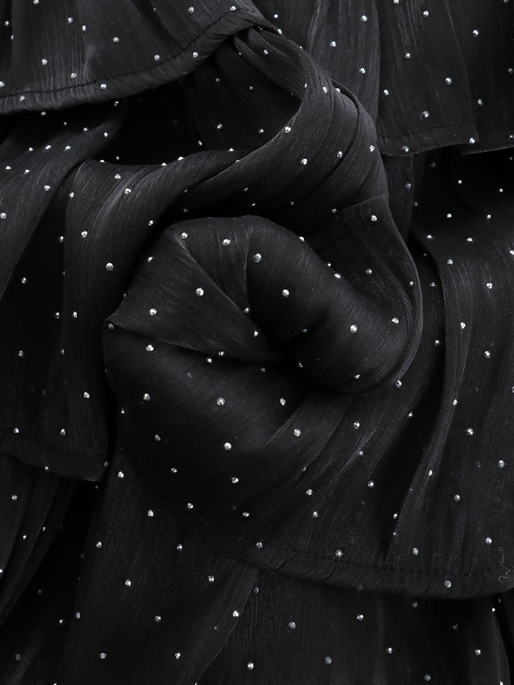 #ブラック #ホワイト #ももか着用 #まりん着用 #ミニドレス/ミニ丈 #ドット柄 #無地 ビジュー シフォン #ノースリーブ #胸元隠し(胸隠し) #背中見せ(魅せ) #JEWELSトレンドTOPICSお知らせ