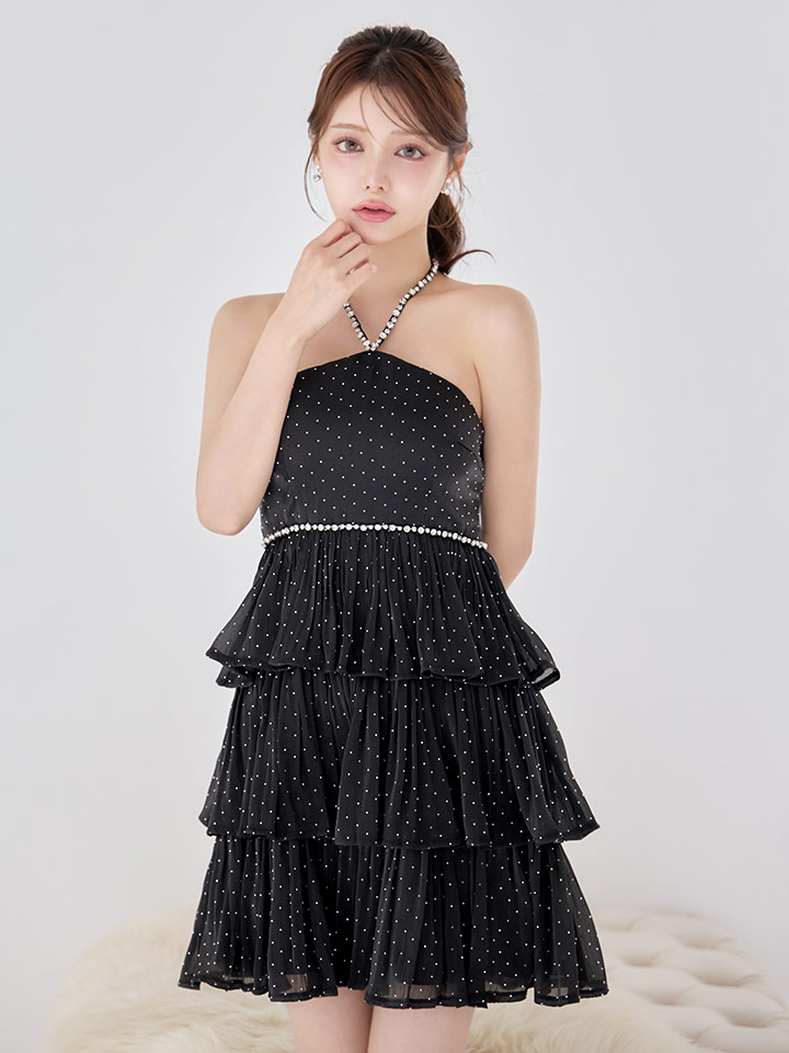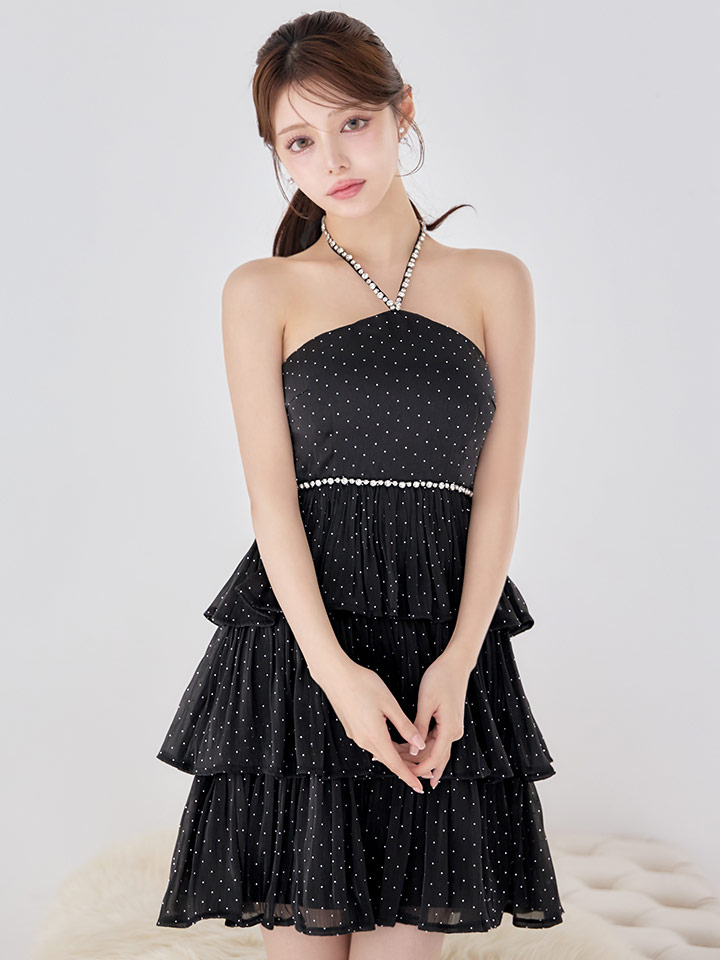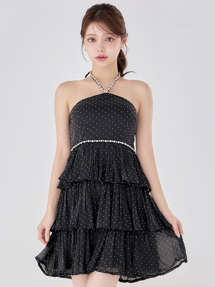 ビジューホルターネックスタッズティアードミニドレス/キャバドレス【XS-Mサイズ/2カラー】[OF03]【YN】dzwgIA [5823YNdzwgIA-251222-1]