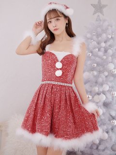 - > 【即日発送!】【サンタコス 4点セット】【XS-XLサイズ/3カラー】ツイードビジュープリーツスカートサンタコスプレ[OF04]