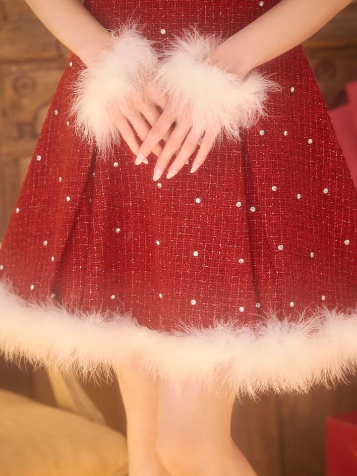 - > 【即日発送!】【サンタコス 4点セット】【XS-XLサイズ/3カラー】ツイードビジュープリーツスカートサンタコスプレ[OF04]