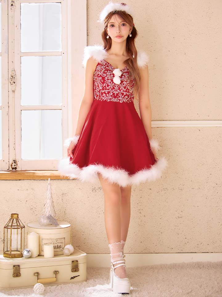 ふわふわのファーとビジューををふんだんに使用した高級ラインのサンタコス♡
