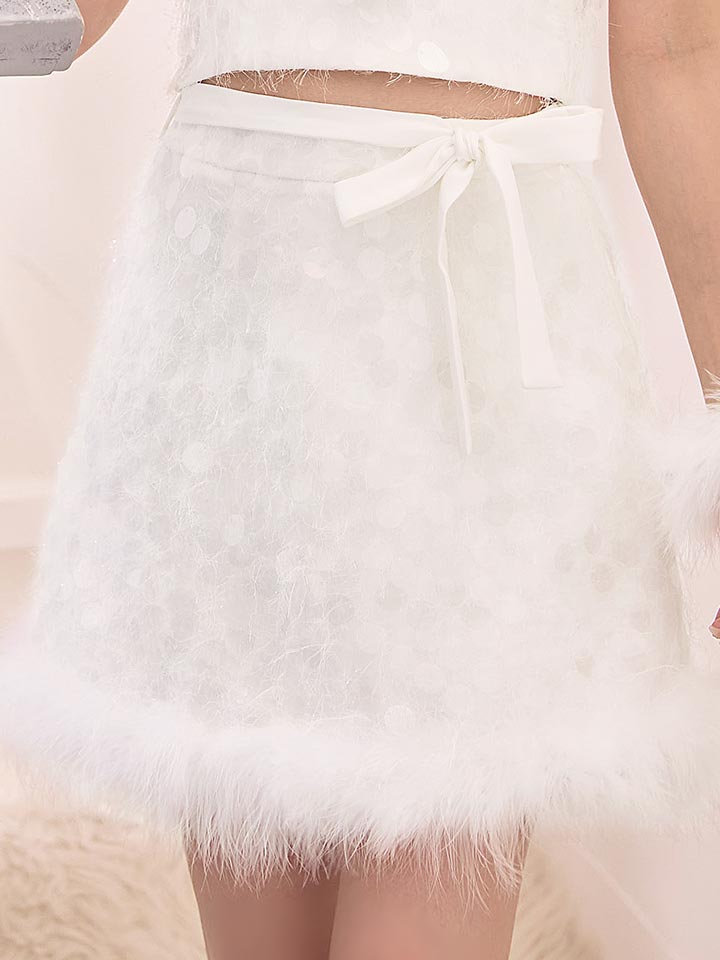 ラメ ニット リボン シャギー セットアップ