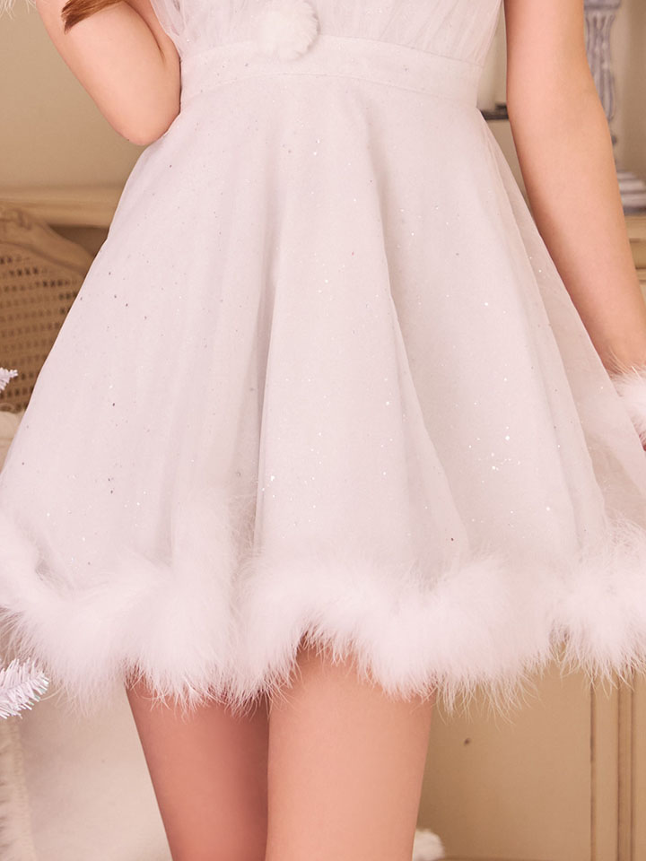 キャミ キャミソール フレアスカート セクシー ファー ブルー