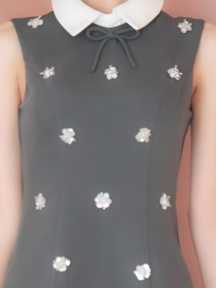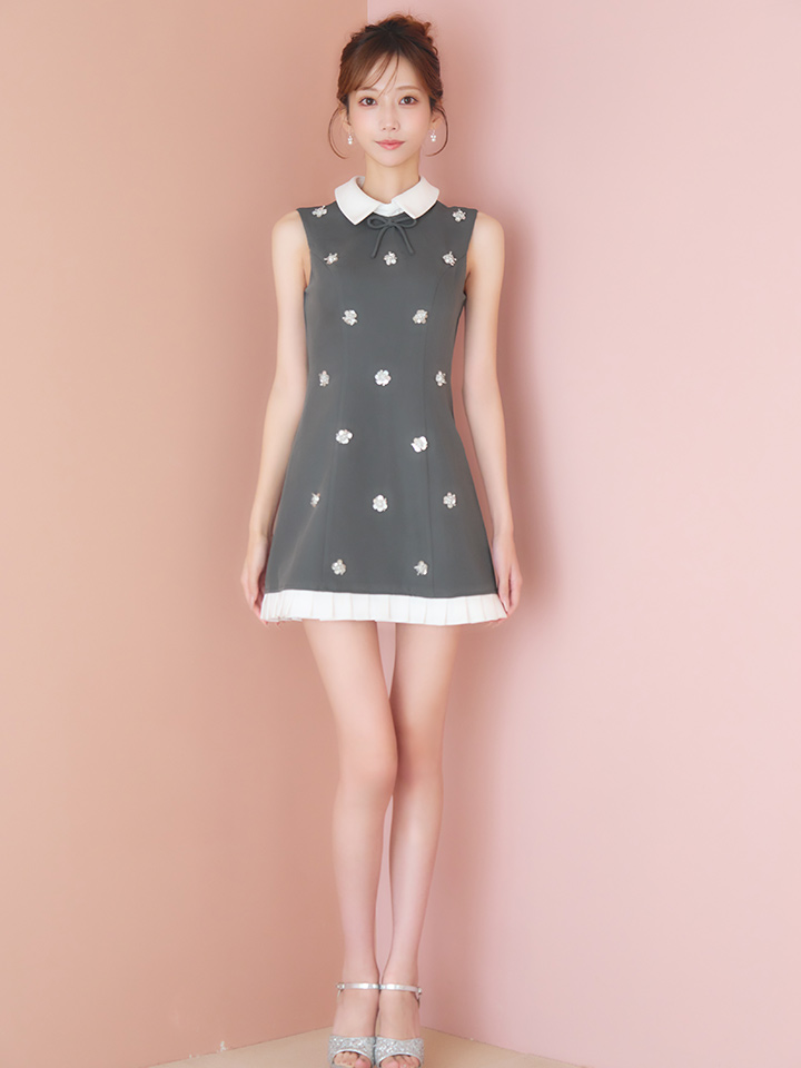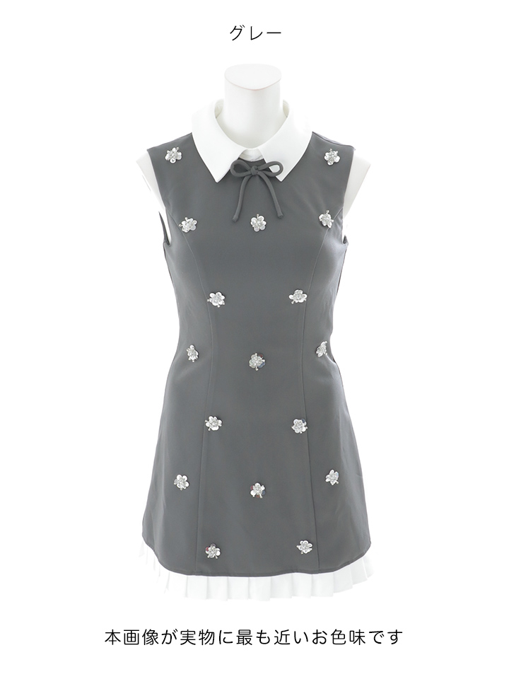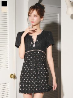 襟付きリボンスパンコールワンピースドレス/キャバドレス【XS-Mサイズ/2カラー】[OF03] 【YN】dzwvIA [5785YNdzwvIA-251126-2]