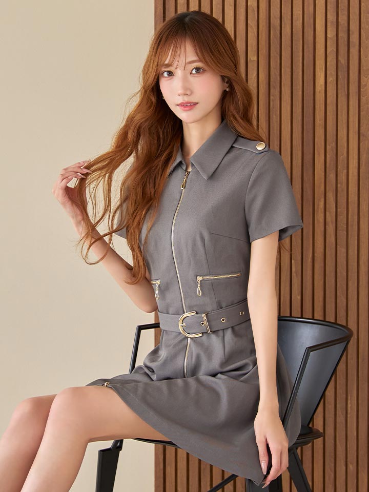 フロントジップワンピースミニドレス/キャバドレス【XS-Mサイズ/2カラー】[OF03] 【YN】dzw [5244YNdzw-251126-1]