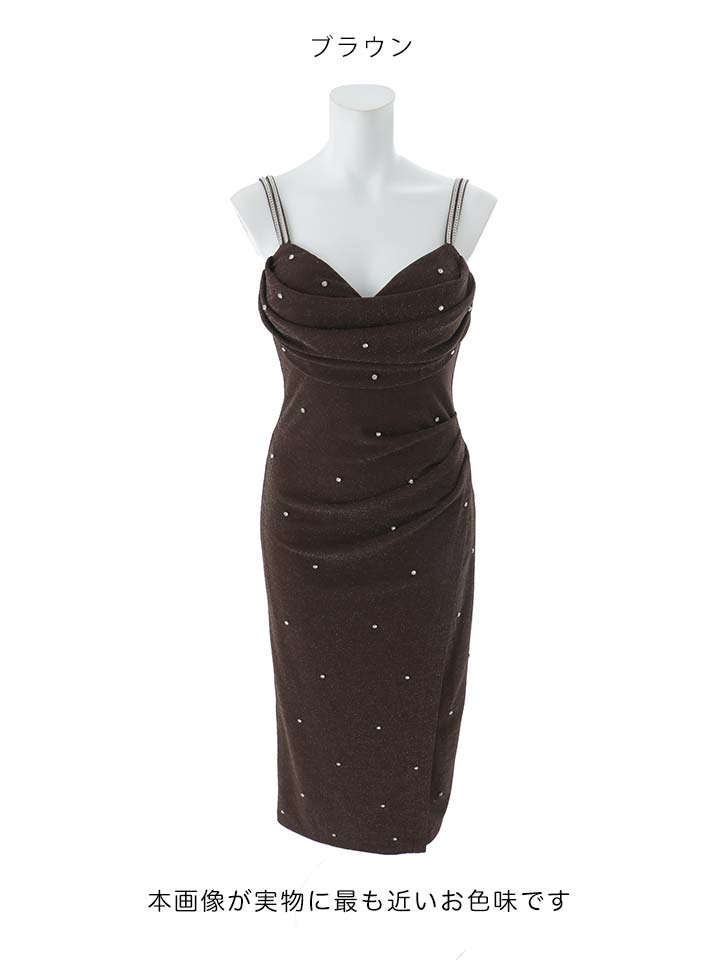 キャミソールラメビジュータイトミディアムドレス/キャバドレス【XS-Lサイズ/2カラー】[OF03] 【YN】dzyFV [5753YNdzyFV-251127-1]