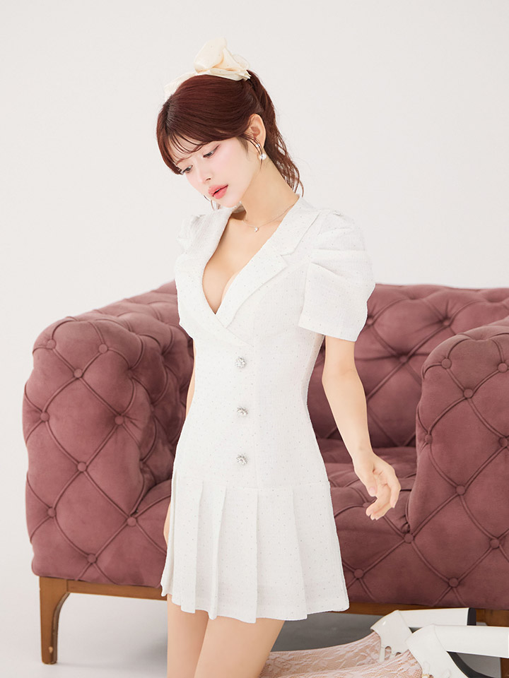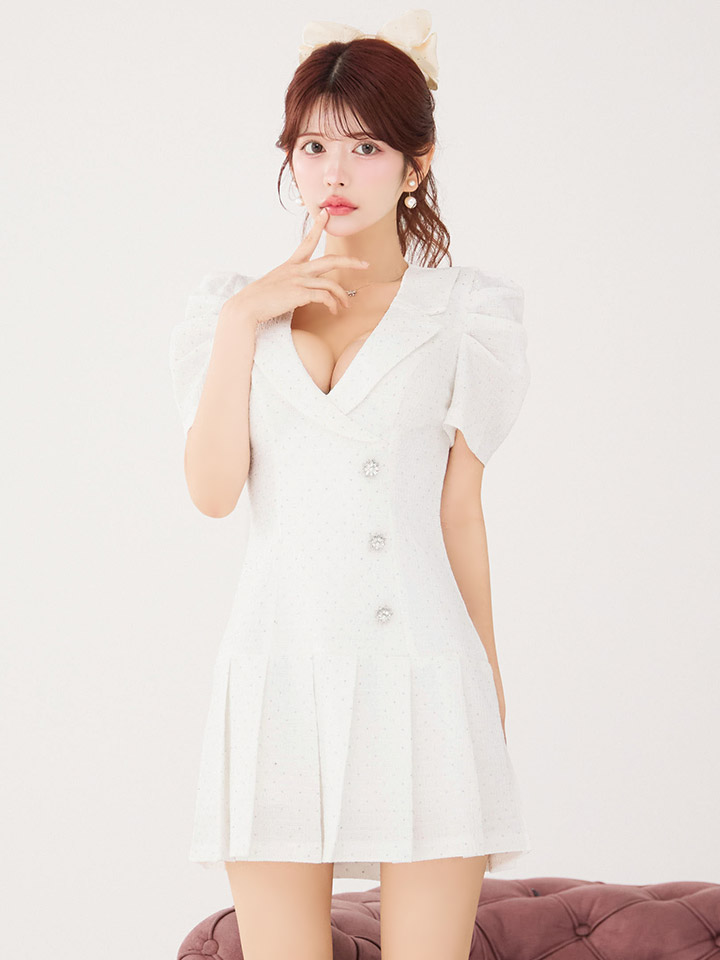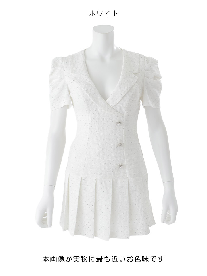 ビジューテーラードプリーツミニドレス/キャバドレス【XS-Lサイズ/1カラー】[OF01A] 【SB】dzwBF