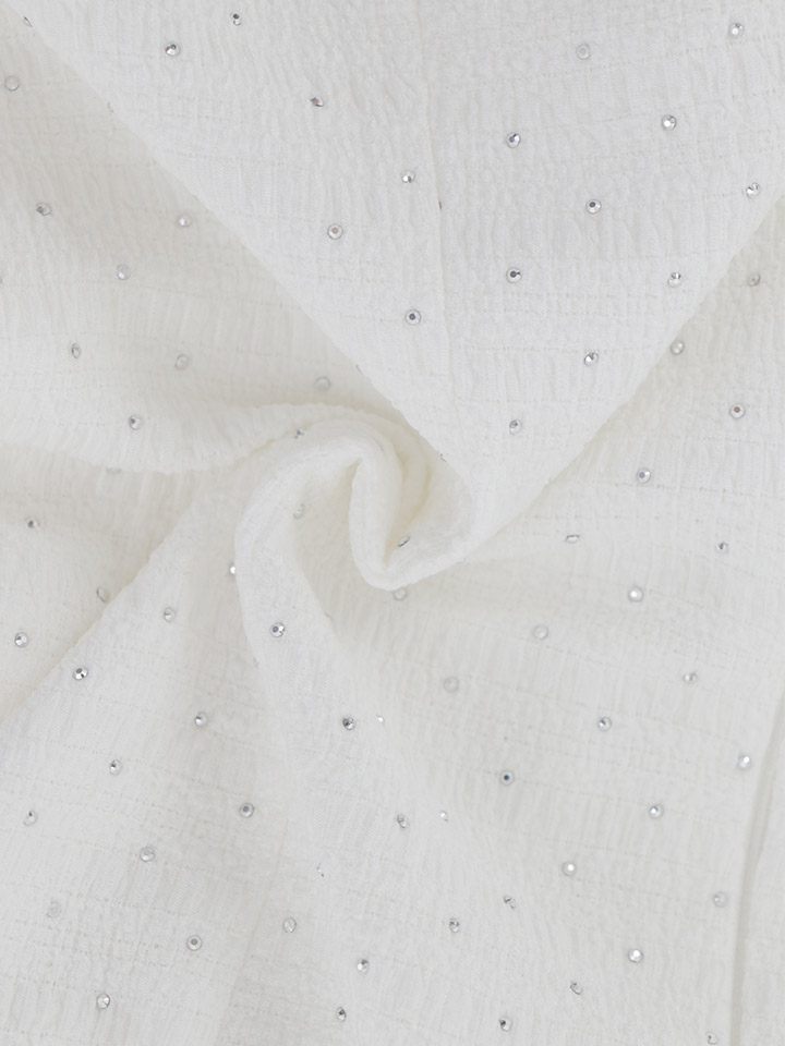 オシャレなデザイン生地にキラキラスタッズが輝く大人可愛いミニワンピドレス。