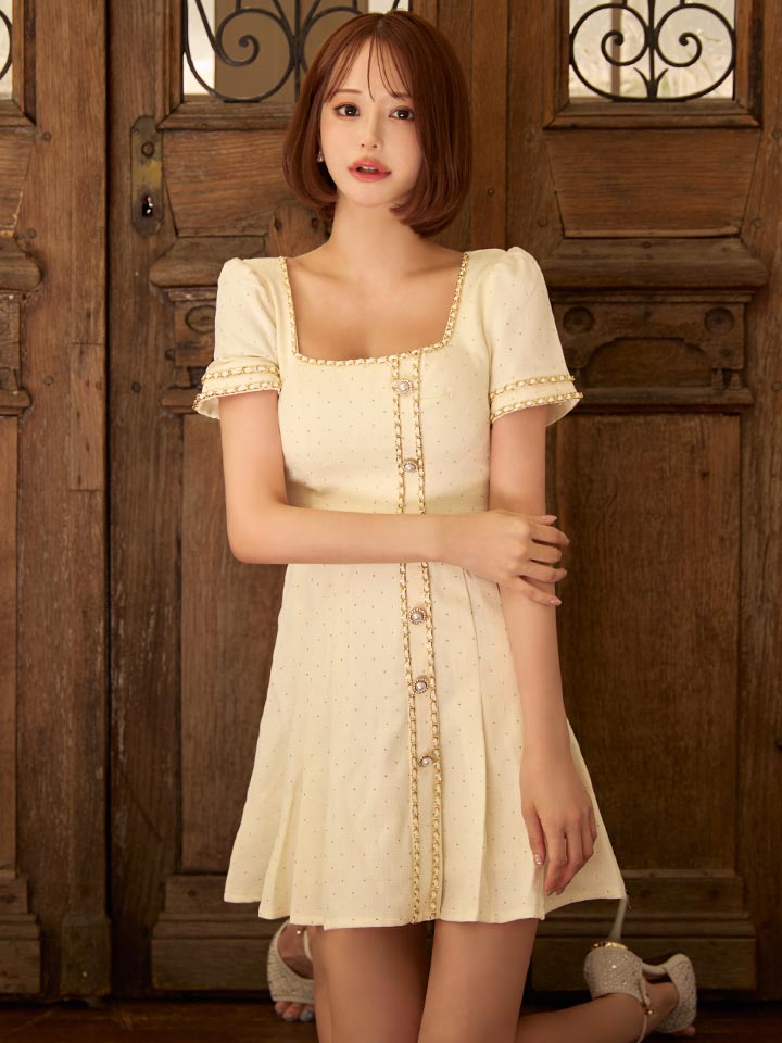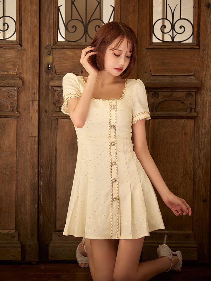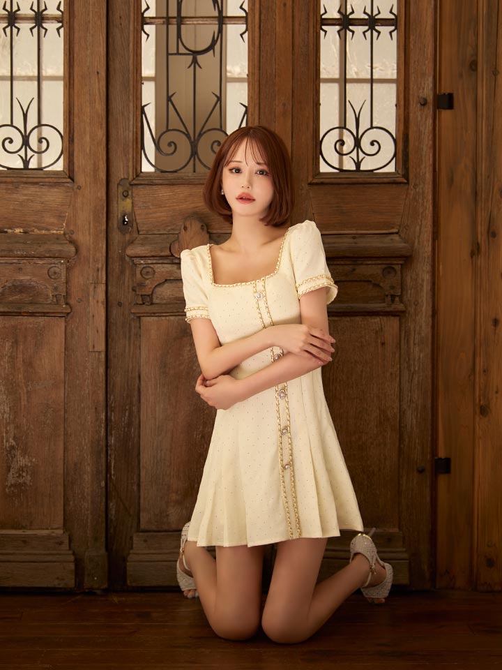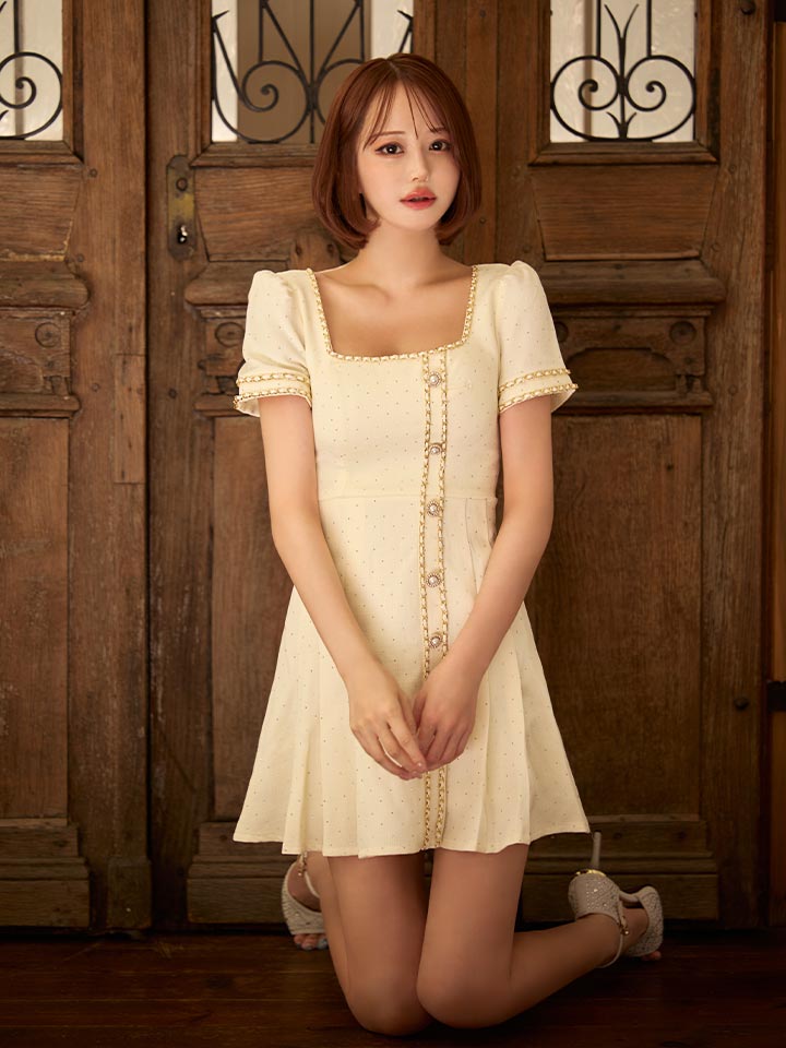 スクエアネックプリーツツイードドレス/キャバドレス【S-XLサイズ/1カラー】[OF01A] 【SB】dzw [3042SBdzw-251129-1]