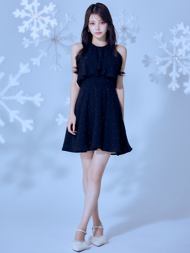 ホルターネックバックビジューフレアミニドレス/キャバドレス【XS-Mサイズ/2カラー】[OF03] 【YN】dzjvAG [5807YNdzjvAG-251201-2]