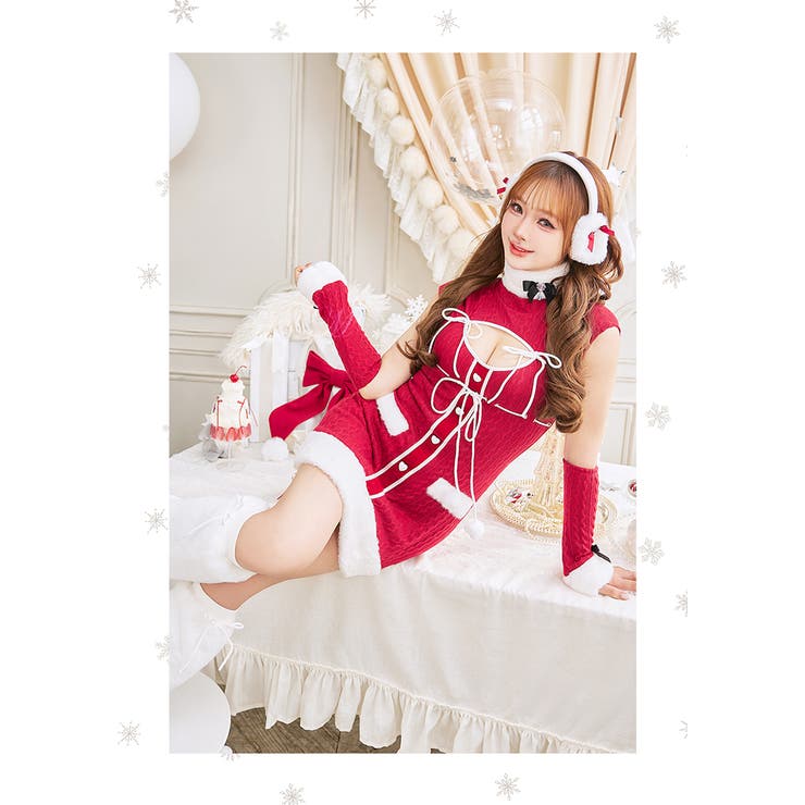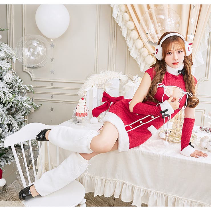 ニットワンピスタイルが冬らしくてかわいい♪サンタコスチューム6点セット■仕様