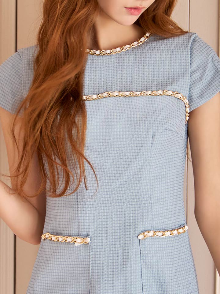 チェーンチェックツイードワンピースドレス/キャバドレス【XS-XLサイズ/5カラー】[HC02-X] 【YN】dzw [4882YNdzw-251204-1]