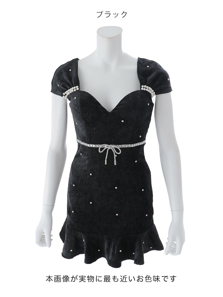 送料無料!【即日発送】ビジューリボンベロアマーメイドミニドレス/キャバドレス【XS-Lサイズ/1カラー】[OF01] 【SB】dzwBF [3501SBdzwBF-251217-1]