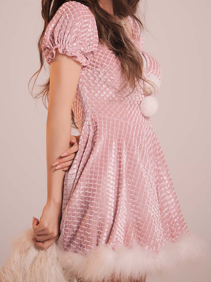 クロスネックがセクシーさを演出する、オフショルサンタコスプレ。