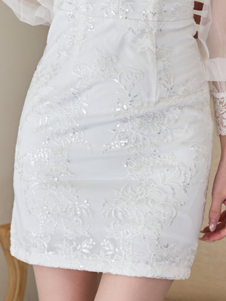 花柄刺繍レースシアースリーブビジュータイトミニドレス/キャバドレス【XS-Mサイズ/1カラー】[OF03] 【YN】dzwuJS [5679YNdzwuJS-251209-1]