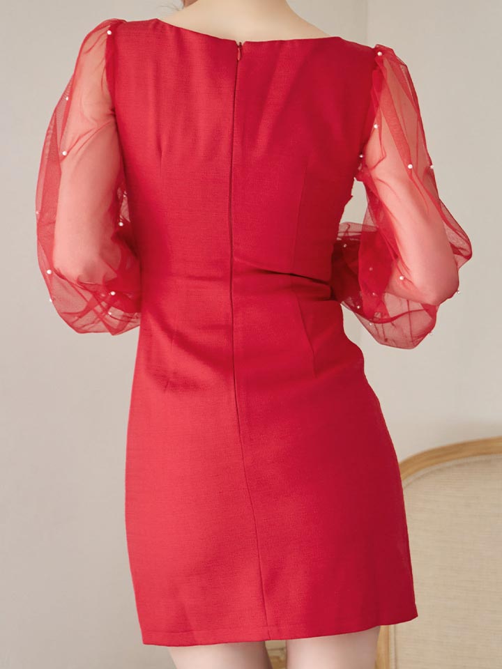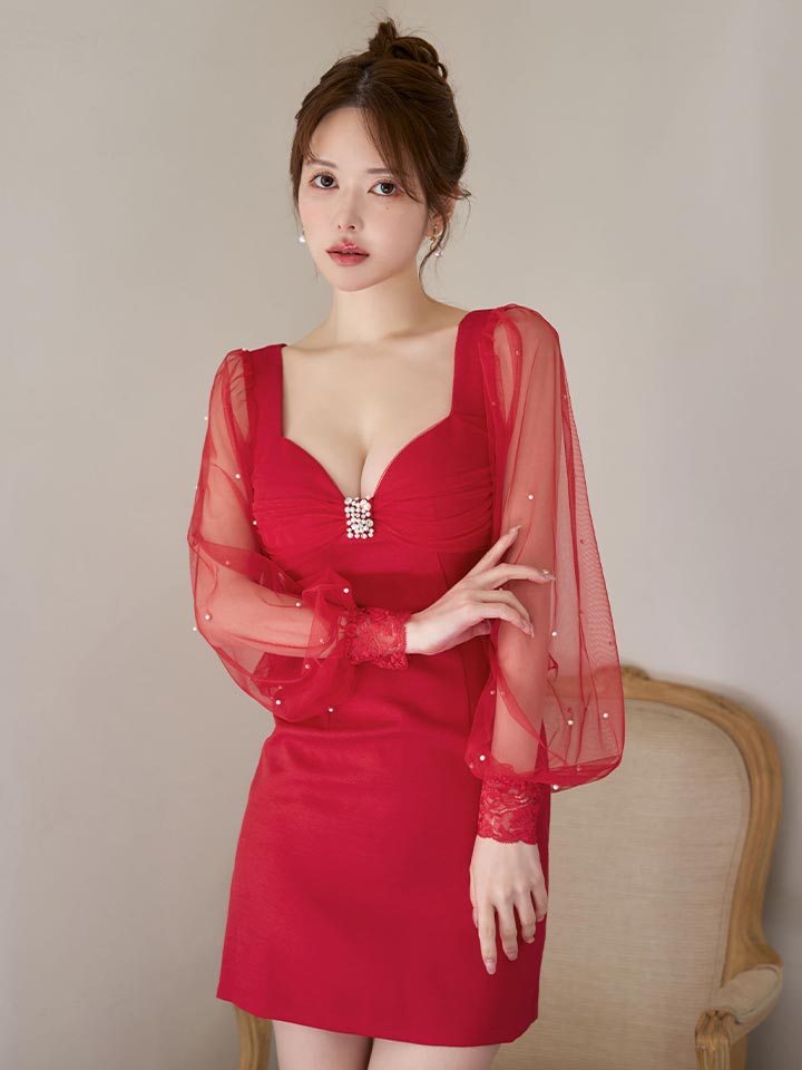 SALE!パールシアースリーブタイトミニドレス/キャバドレス【S-Lサイズ/1カラー】[OF03] 【YN】dzcn [5273YNdzcn-251209-1]